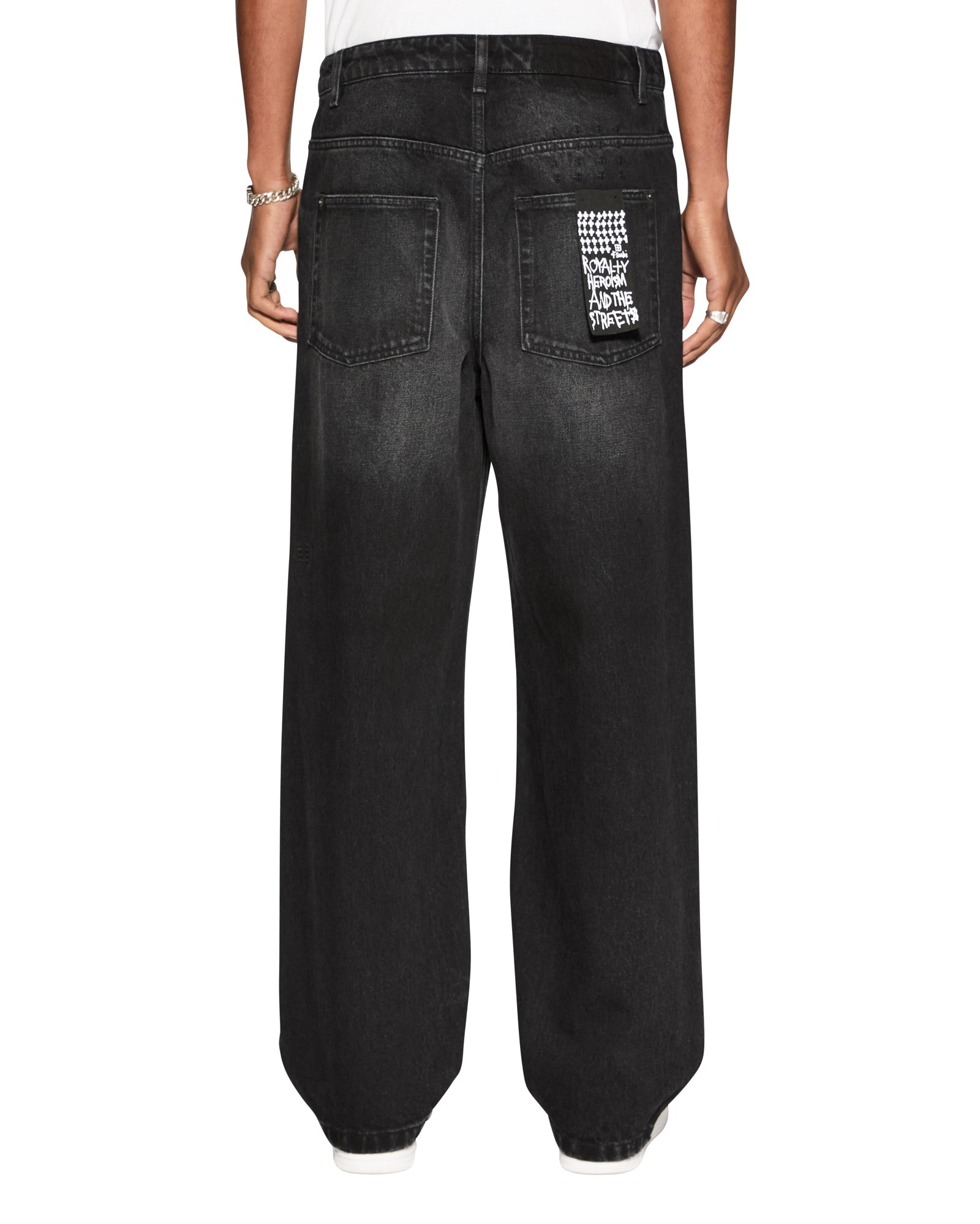 The Maxx Sabbath Black is a straight leg, long rise jean made from a rigid stone wash denim. Seasonal artwork is printed on the front of the jean and is finished with signature T-box and 4x4 embroidery, and Ksubi branded hardware.