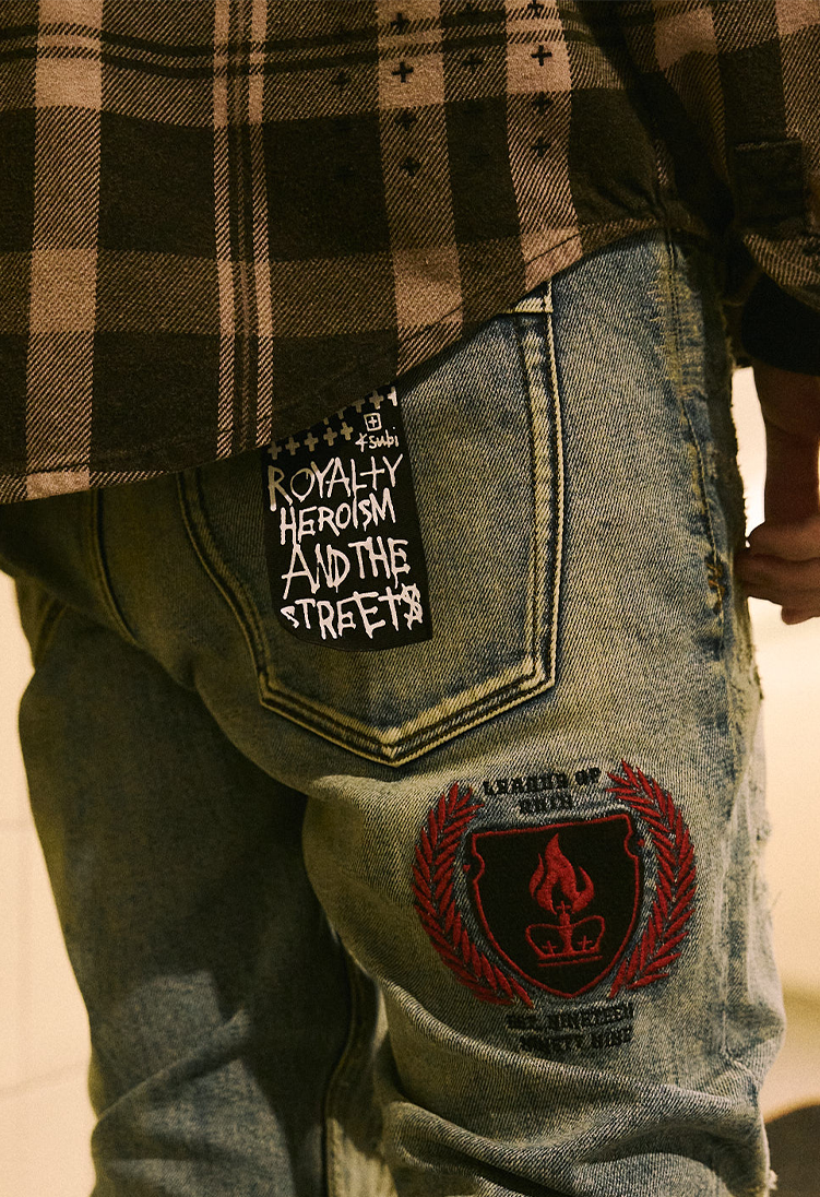 The Maxx Vintage Blue Jean is a mid rise oversized fit with a loose leg opening and exaggerated stacking at the ankles. Made from premium rigid denim in a mid wash, it features light seam grinding, a ghosted back patch, and Ksubi branding.