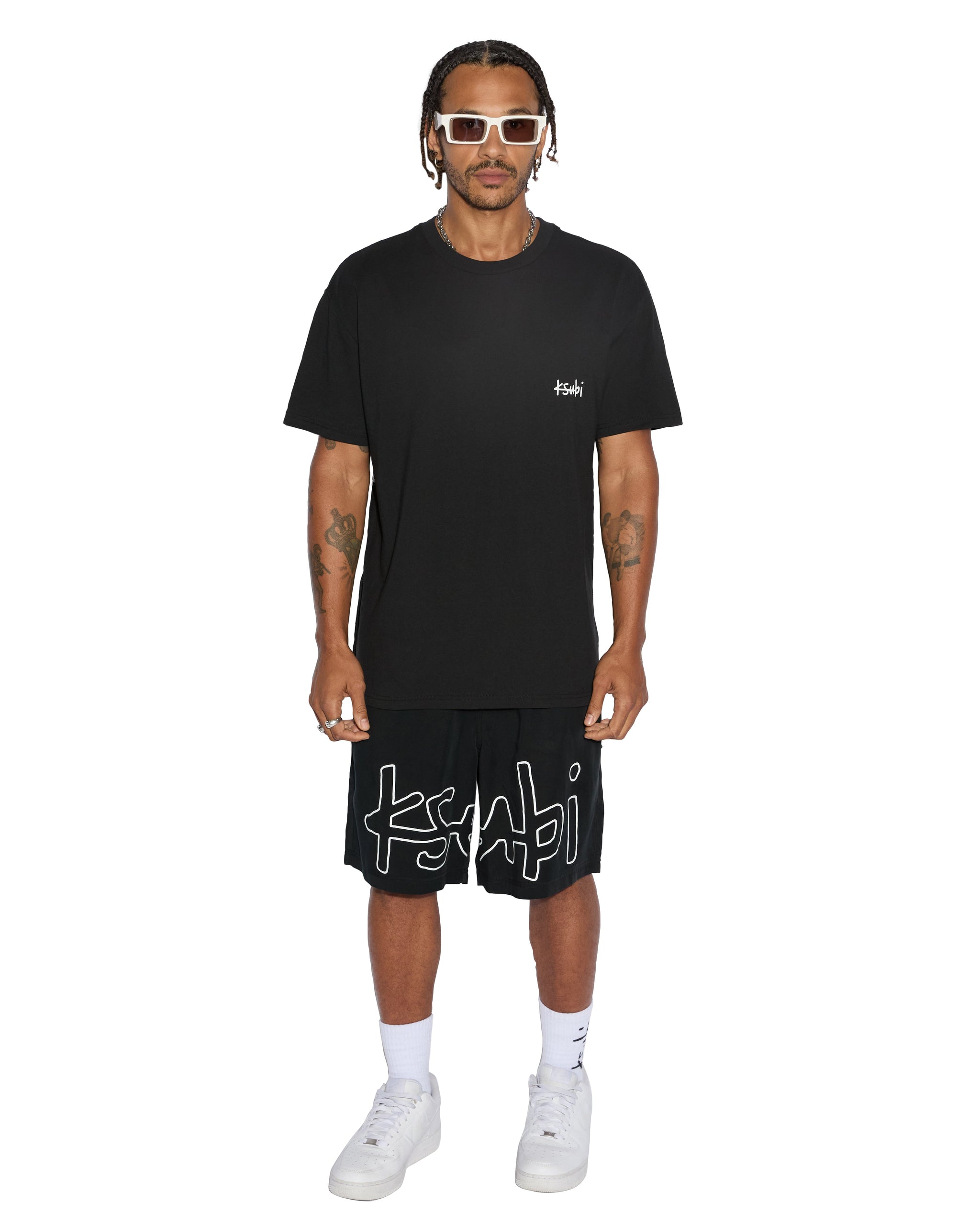 The All Day Biggie Ss Tee Jet Black is an oversized fit t-shirt made from an age washed black cotton jersey. This tee features tonal text on the front left chest and a t-box on the side. Finished off with a signature rats tail, raw-cut back hem and a reverse overlocked side seam.