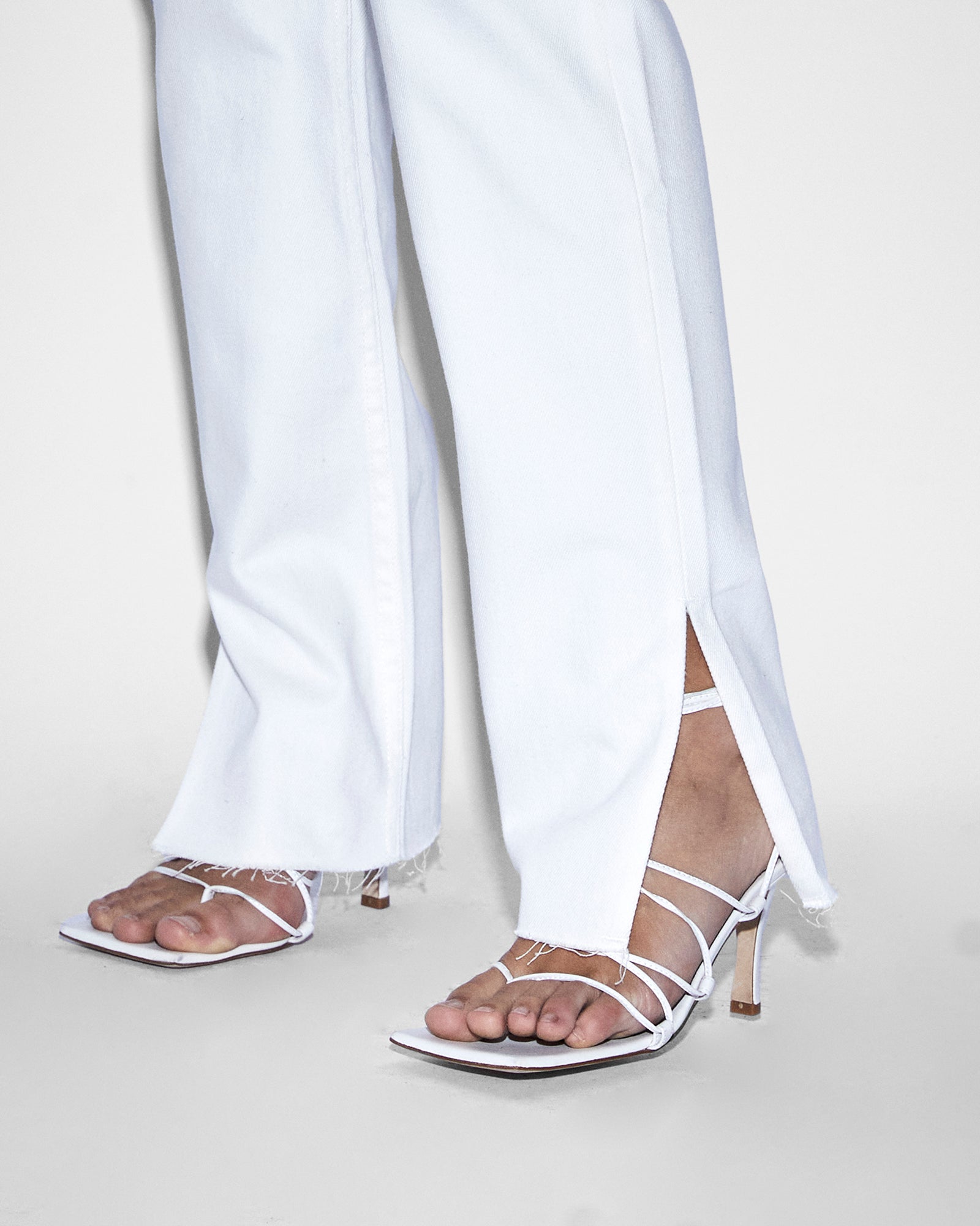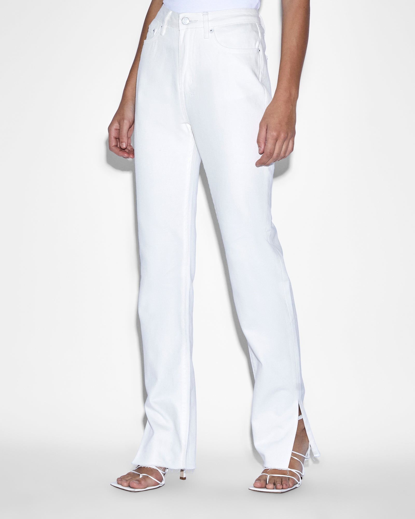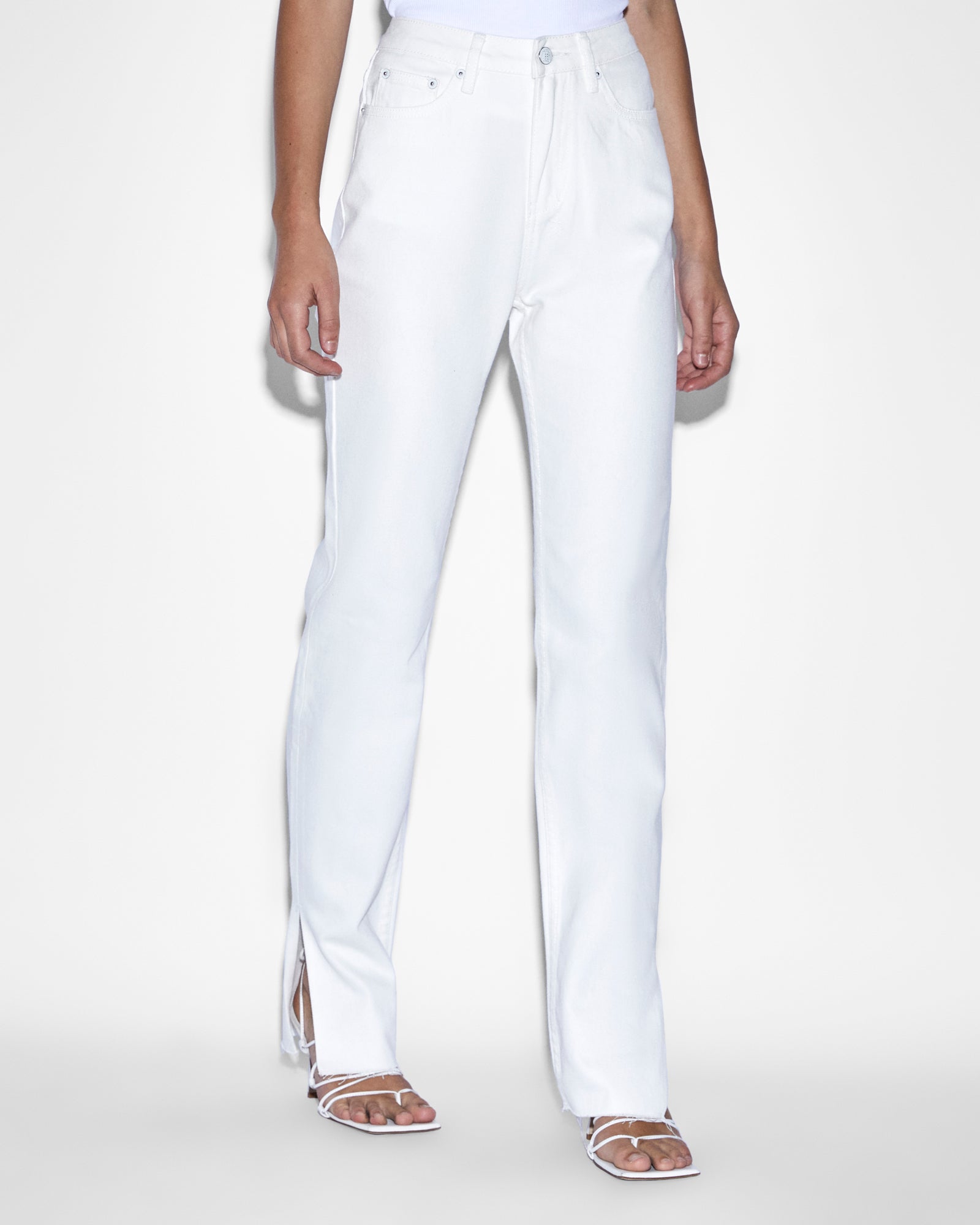 The Melrose Jean Blanc is made from a premium rigid denim featured in a white colourway. This style is a slim cigarette fit, high rise waist and features Ksubi branding, classic five pocket detailing and full length with side seam hem split.