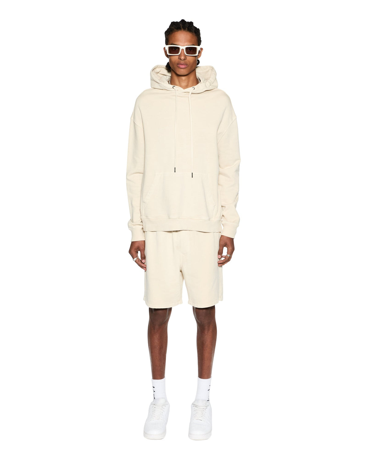 The Kross Biggie Hoodie Desert is an oversized fit in a cream colourway. Garment dyed and made from a premium cotton open ended jersey with aged wash. This style features original Ksubi oversized back 4x4 cross print, hood with metal drawstring, branded hardware, signature rats tail and Ksubi t-box printed branding.
