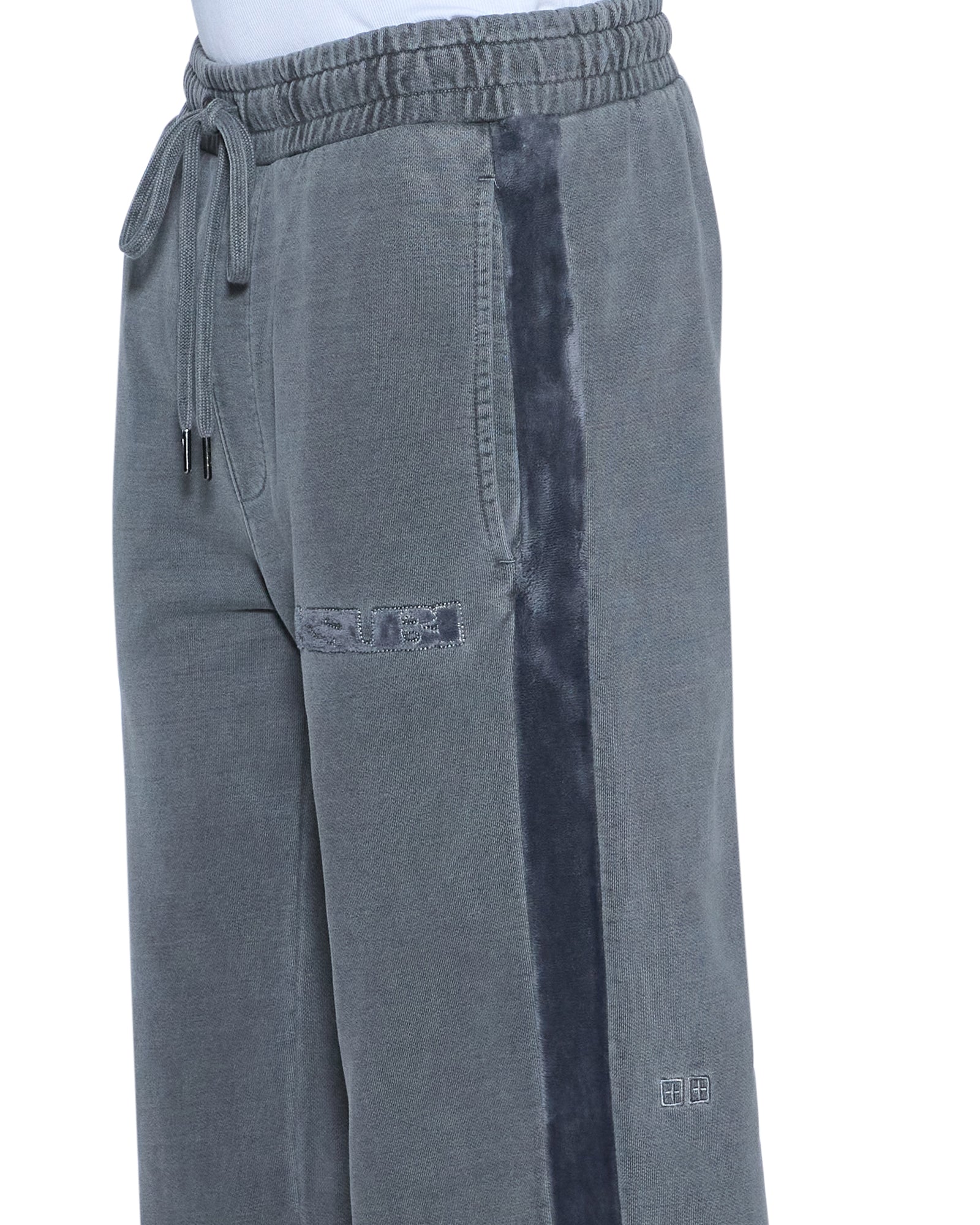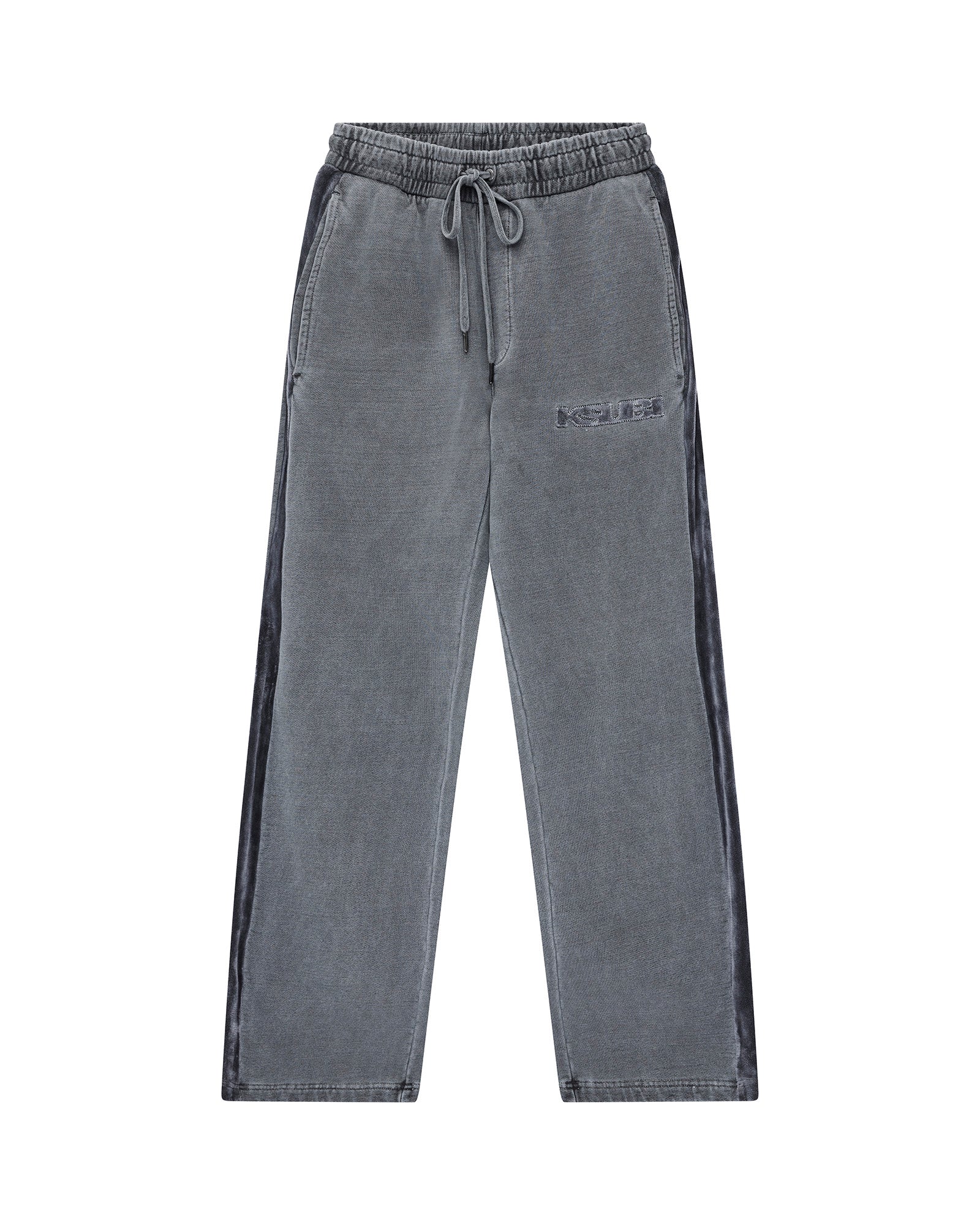 The 4X4 Luxe Synthesis Trak Pant Charcoal is a mid-rise, straight leg track pant with an elasticated waistband and drawcord for all-day comfort. Crafted from premium loopback fleece in a charcoal grey colourway, it features flocked side seam panels with saddle stitching, a Sign of the Times applique logo, and is finished with signature T-box and 4x4 embroidery branding.