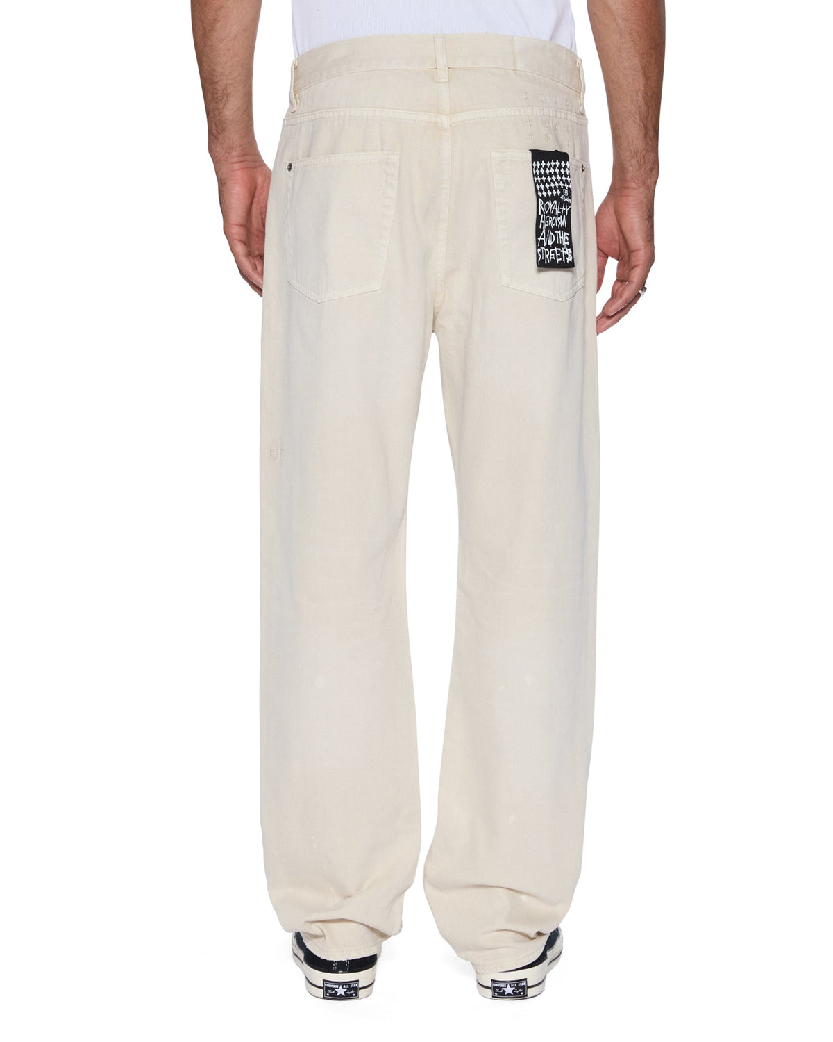 The Anti K Ivory is a mid-rise relaxed straight fit jean with a regular leg opening, made from premium rigid denim with an overdye and stone wash. Accented with bleach splatters, ghost patching, Ksubi branded hardware, and signature T-box and 4x4 embroidery for a bold, worn-in look.
