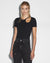 The Arise Cut Out Ss Tee Black is a basic ribbed t-shirt featuring an asymmetric cut out detail and a silver t-box charm at the left collarbone. Made from a premium cotton/elastane blend rib in a jet black colourway with tonal T-box branding on the side.