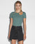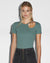 The Arise Cut Out Ss Tee Lagoon is a basic ribbed t-shirt featuring an asymmetric cut out detail and a t-box charm at the left collarbone. Made from a premium cotton/elastane blend rib in seasonal Lagoon green colourway with tonal T-box branding on the side.