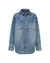 The Bolt Oversized LS Shirt Swept is an oversized fit button-through shirt with full-length sleeves, elongated cuffs, and a curved hem. Made from premium European rigid denim in an everyday mid-blue stone wash with subtle signs of wear, it features layered panels on the front attached with Ksubi branded shanks and concealed snaps at the CF placket. Finished with T-box 3x4 branding, style it back with the Low Rider Mini Exposed Swept.
