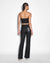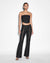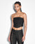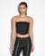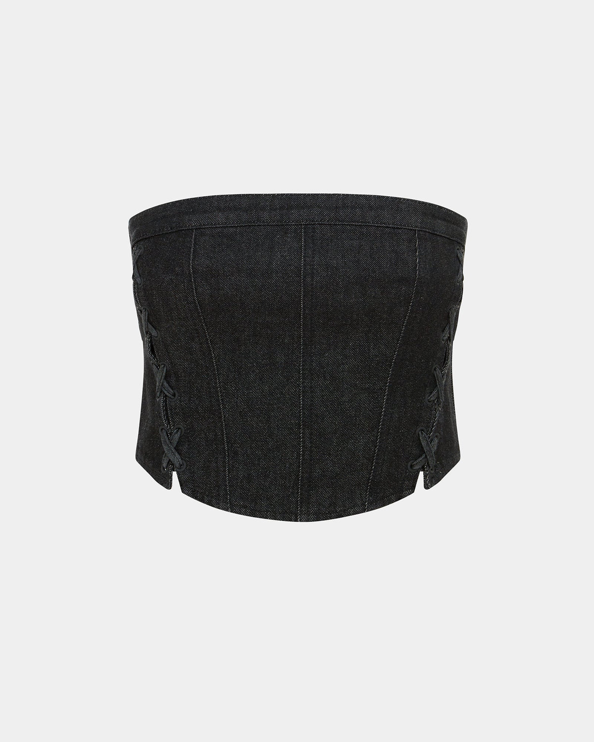 The Ebony Laced Bustier is a strapless bustier made from a premium comfort stretch, raw black denim. This style features black metal eyelet lace-up detailing at the front angled panel lines, side seam boning and a centre back metal zip. A light rinse wash has been applied to soften the denim for a more comfortable fit. Designed to be worn as a set with the Soho Ebony Lace-up jean.
