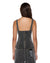 The Cargo Top Cinder is a fitted full-length bodice featuring a raw cut hem and self-adjustable straps, made from premium black stonewashed denim with tobacco topstitching. It includes front flap pockets, 3D zipper patch pockets, an exposed center back zipper, and is finished with T-box embroidery. Style back with the Soho Slouch Cargo Cinder for a cool-girl double denim look.