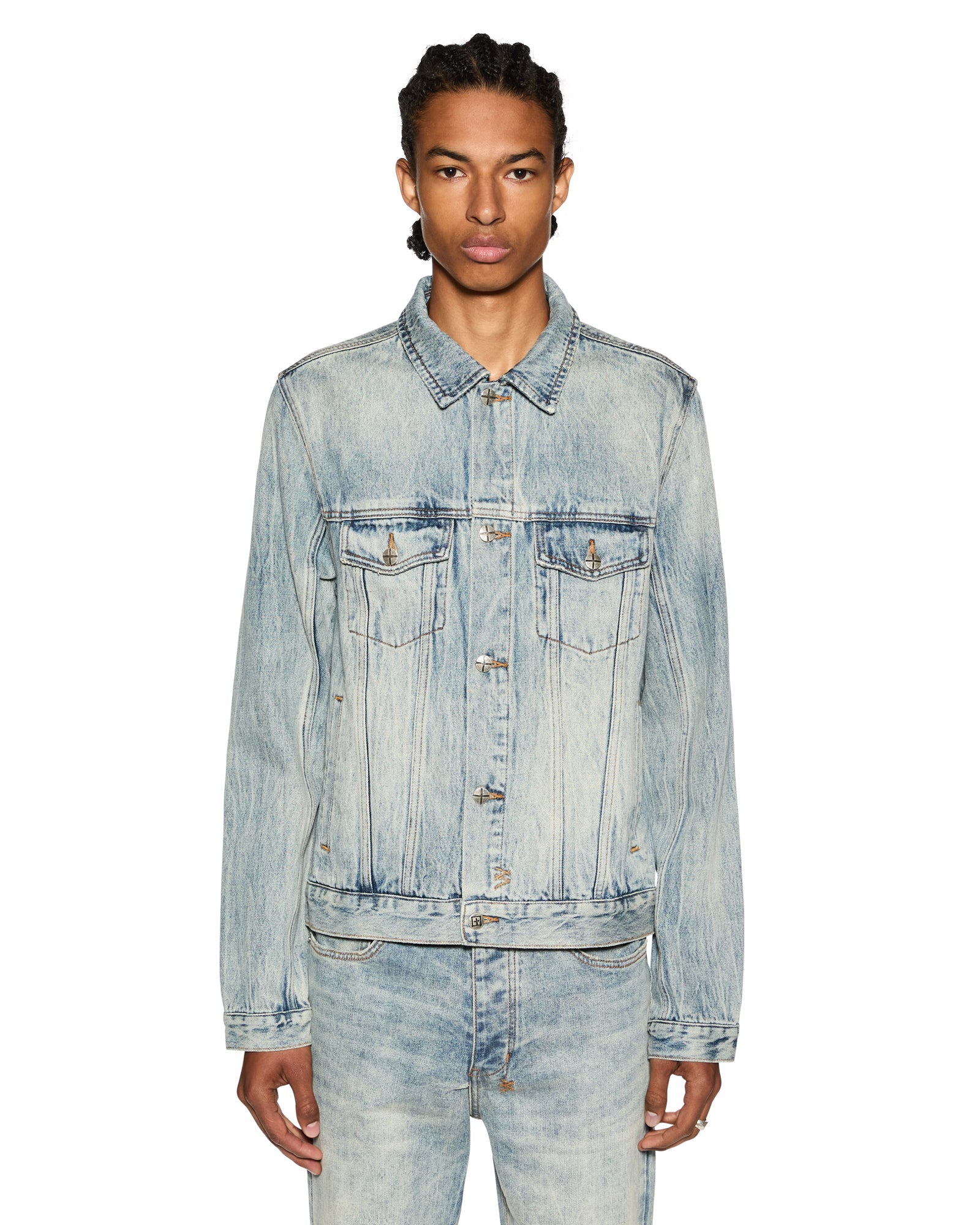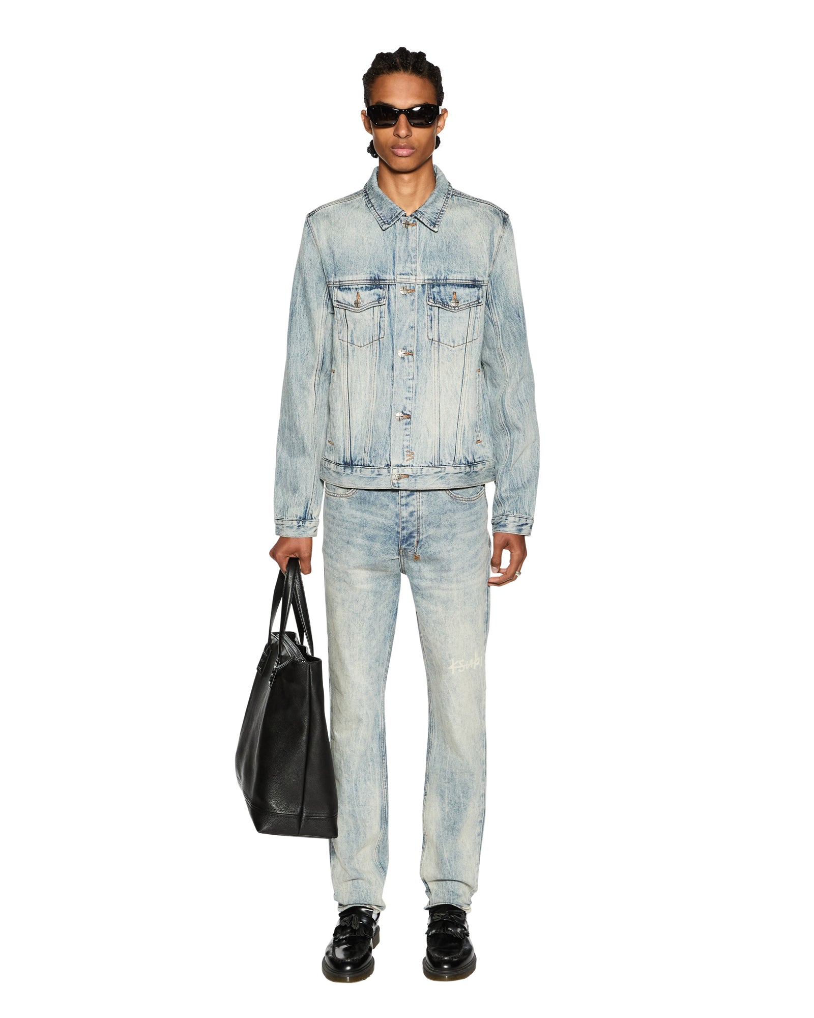 The Chitch Stairway is a slim tapered jean crafted from premium comfort stretch indigo denim with a heavy marbled stone wash. It features a 1999 embroidered logo, knee deconstruction details, and is finished with signature t-box and 4x4 embroidery, along with Ksubi branded hardware.