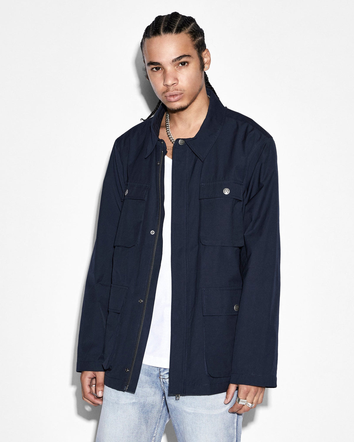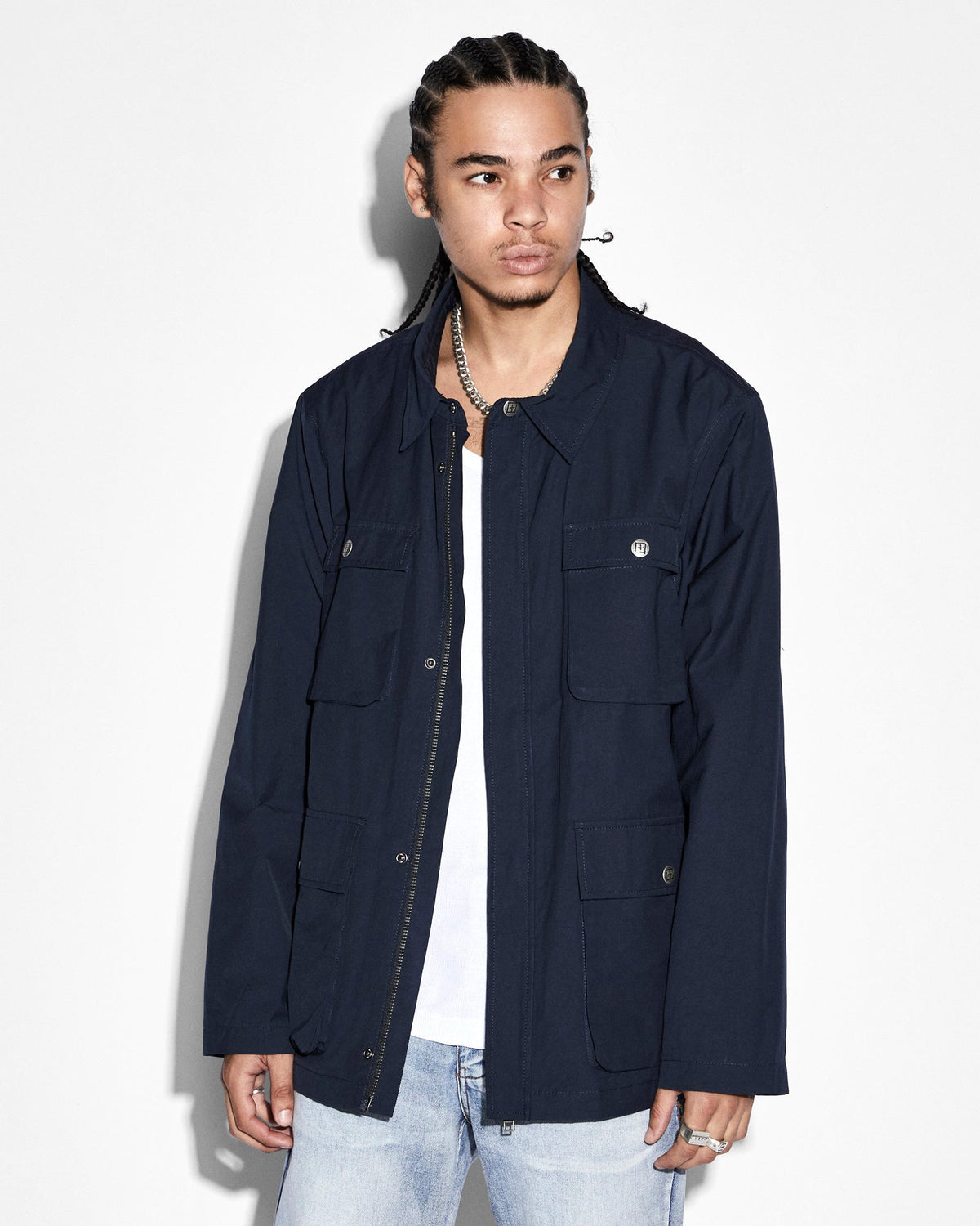 The Detonate Jacket Navy is designed with a relaxed fit, zip up front button down and classic 2 piece front flap collar. Made from premium nylon in a navy colourway, this jacket features 4 front cargo pockets side entry into bottom front pockets, 4x4 embroidery and signature Ksubi branded hardware.