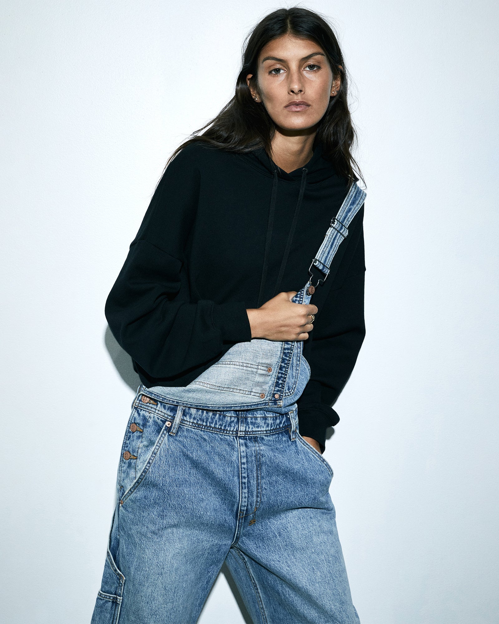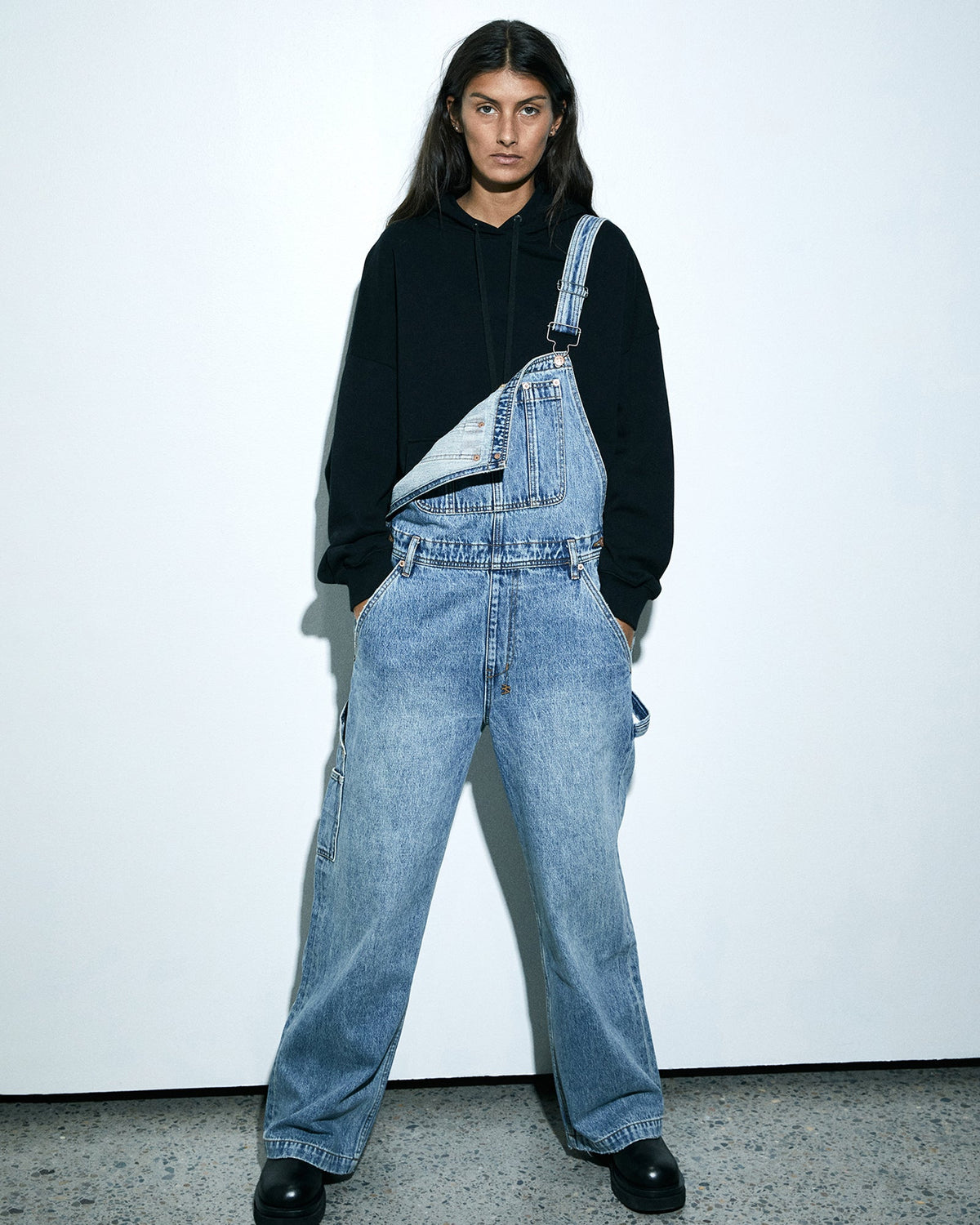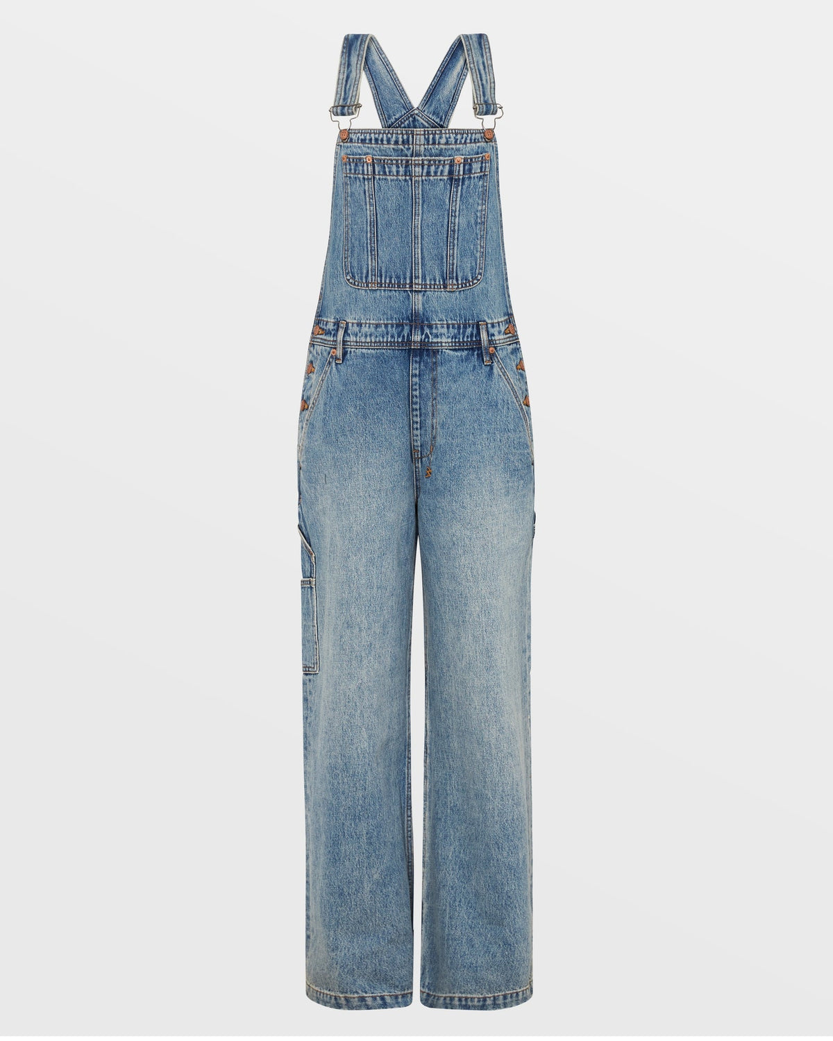 The Easy Overall Lifetime is constructed from premium rigid denim in a vintage indigo wash. This full length, relaxed fit overall has adjustable shoulder straps, wide straight legs, button closures on both sides. Finished with Ksubi branding and faux front fly topstitch details.