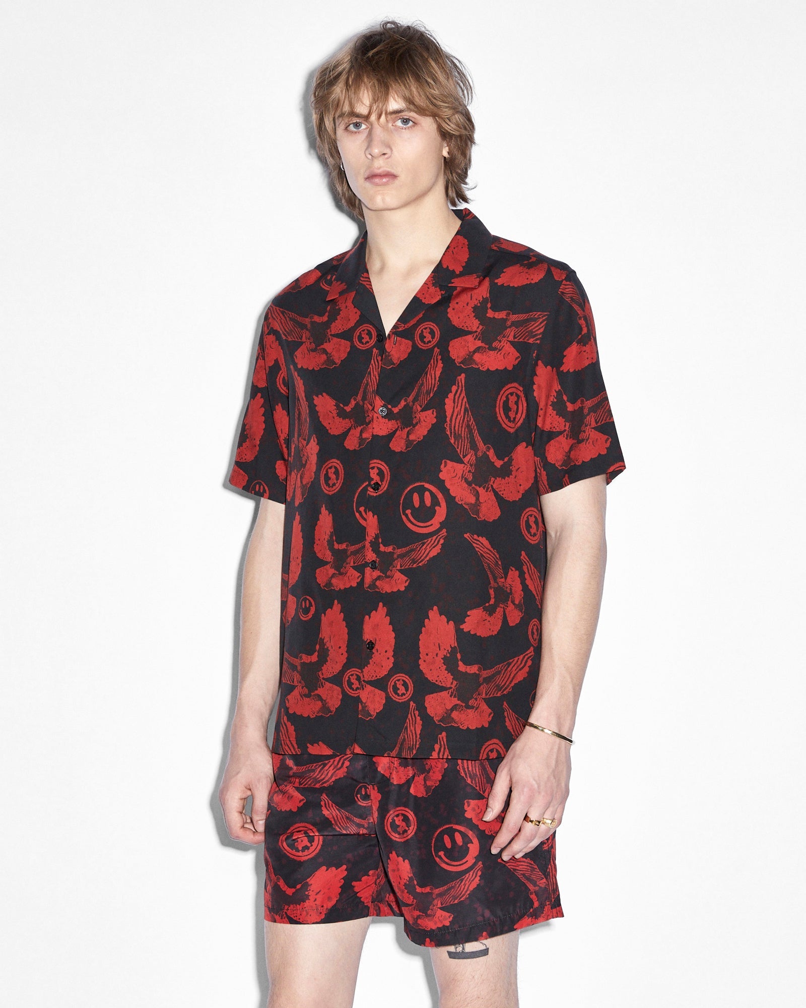 The Flight Boardshort Multi is a water resistant short featuring an all over black and red original printed artwork. This regular fit boardshort features an elastic and drawstring waistband with branded metal trims, a t-box charm and Ksubi t-box printed branding.