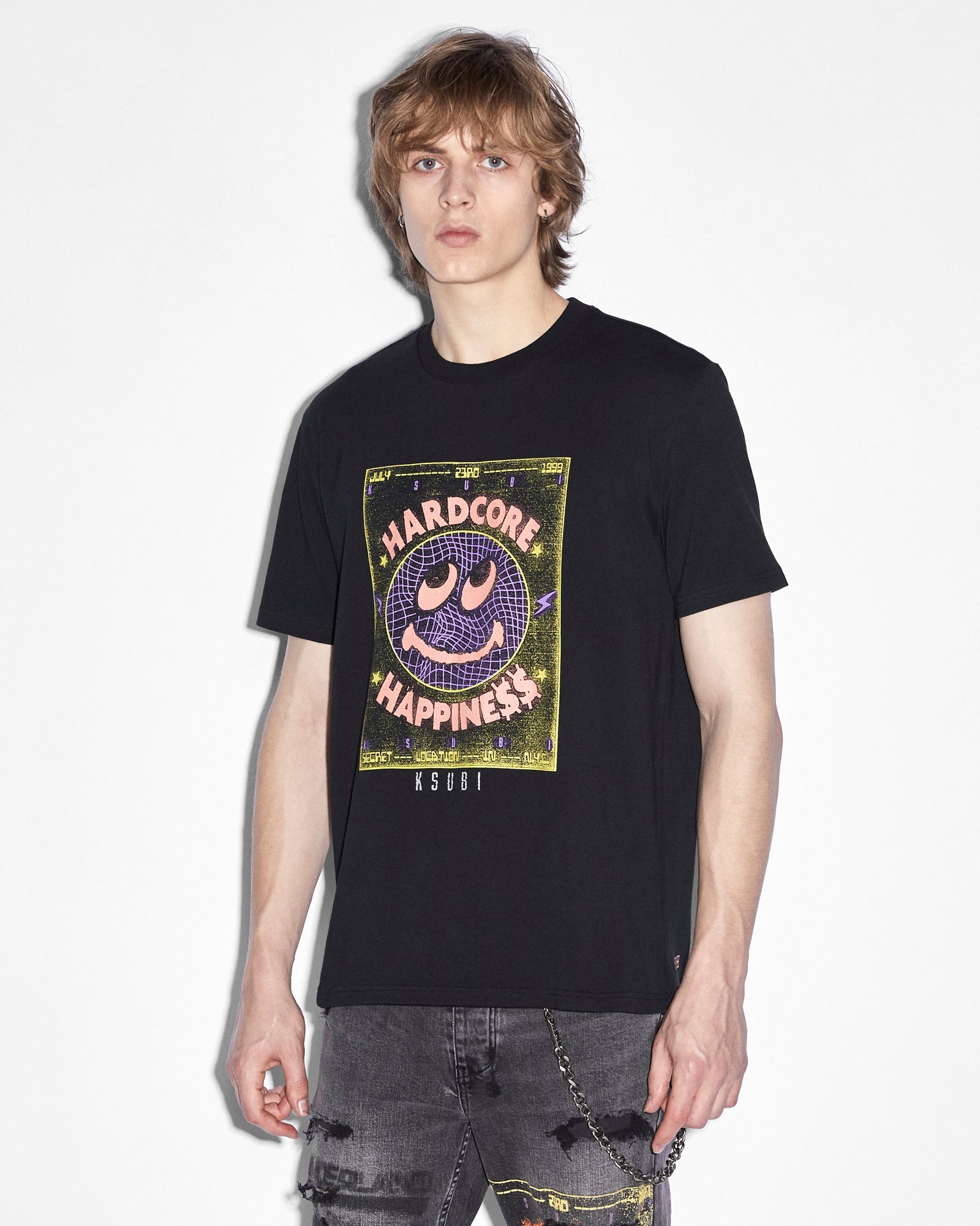 The Hardcore Kash Ss Tee Jet Black is a regular-fitted t-shirt, crafted from premium cotton jersey in a piece-dyed jet black. Featuring short sleeves, a crew neck, a reverse overlocked side seam and a rats tail. A large scale front screen-printed seasonal artwork, complemented by extra large 4x4 screen prints on the back to match.