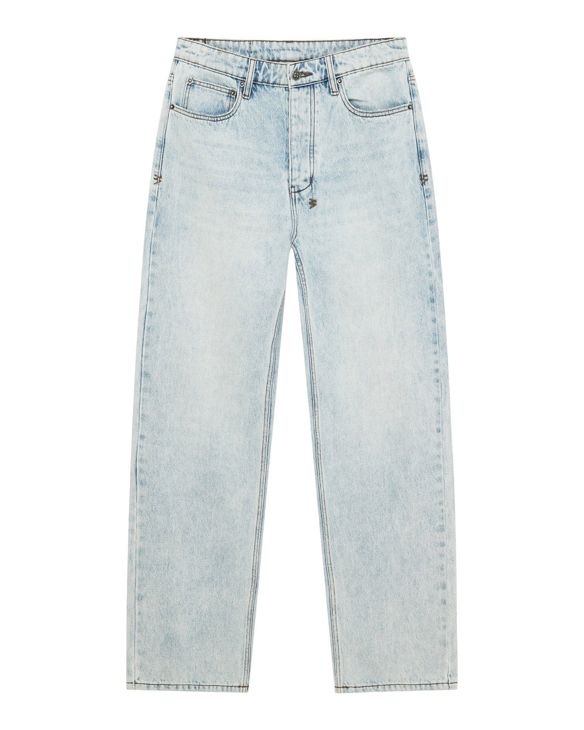 The Hazlow Frost Blue is a mid-rise relaxed straight leg jean with a regular leg opening, crafted from premium rigid indigo denim with a heavy stone wash. Featuring ghost patch detailing, Ksubi branded hardware, and finished with the signature T-box and 4x4 embroidery.