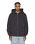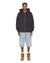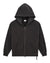 The Intruder Ekcess Zip Thru Hoodie in Faded Black is a boxy oversized hoodie with a single-piece hood, zip-through front closure, and front pouch pocket. Crafted from premium loopback fleece in a Faded Black colourway with a sunfaded wash, it features a debossed "Sign of the Times" logo at the front crest and top of the hood, finished with T-box and 4x4 embroidery branding.
