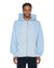 The Intruder Ekcess Zip Thru Hood in Ice Mist is a boxy oversized hoodie with a single-piece hood, zip-through front closure, and front pouch pocket. Crafted from premium loopback fleece in a Blue Mist colourway with a sunfaded wash, it features a debossed "Sign of the Times" logo at the front crest and top of the hood, finished with T-box and 4x4 embroidery branding.