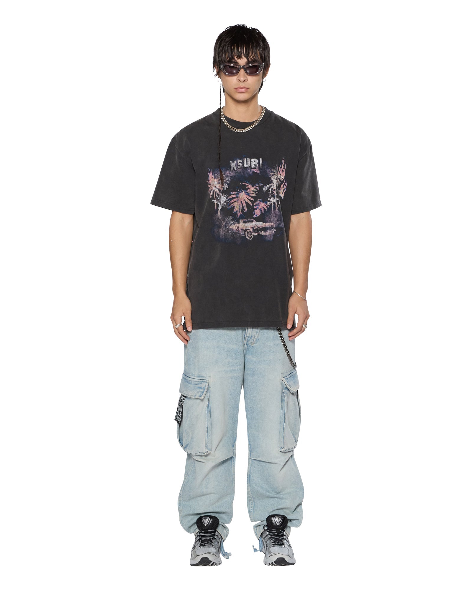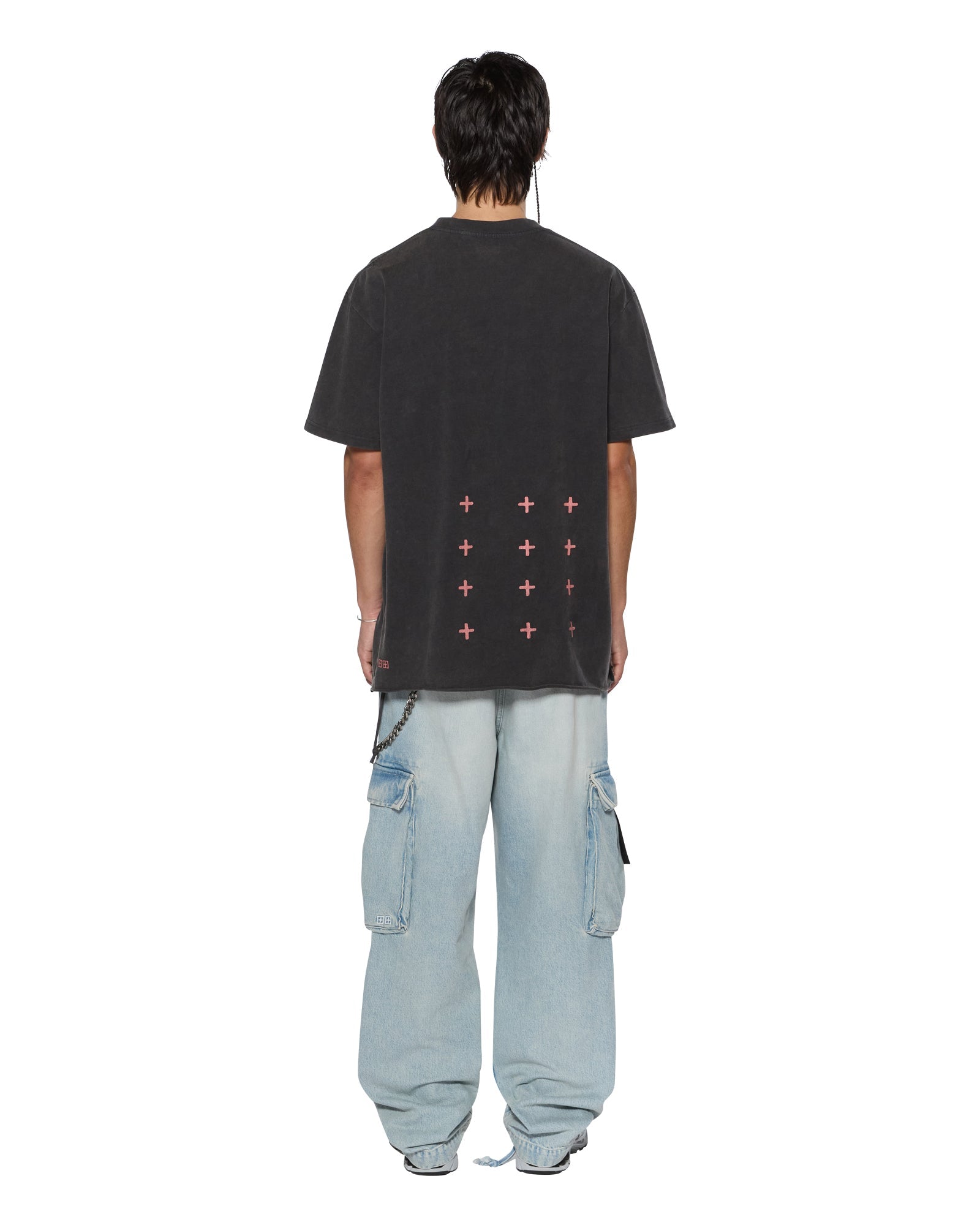 The Island Biggie SS Tee Faded Black is an oversized fit short sleeve t-shirt with raw-cut back hem, reverse overlocked side seam, and signature rats tail. Made from European cotton jersey in an overdyed faded black with an aged wash, it features cracked screen printed seasonal artwork at the front and is finished with signature t-box and 4x4 branding.