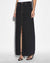 The Kara Maxi Skirt Pitch is a low-rise maxi skirt featuring classic five-pocket styling and a raw-cut hem. Crafted from premium European lightweight denim in a washed black colourway and contrast tobacco topstitching. This skirt showcases a high center front split, light grinding, and Ksubi branding. It's designed to sit lower on the hips and is cut straight to create a flattering silhouette.