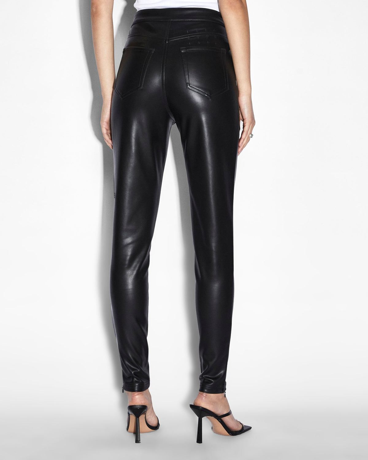 The Klub Pant Kut Out Black is constructed from premium stretch faux leather in a true black colourway and features classic Ksubi branding and invisible zippers at the ankle side seams. This panelled, skinny klub pant has a high rise waist and front panel lines with hip cutouts to show just the right amount of skin.