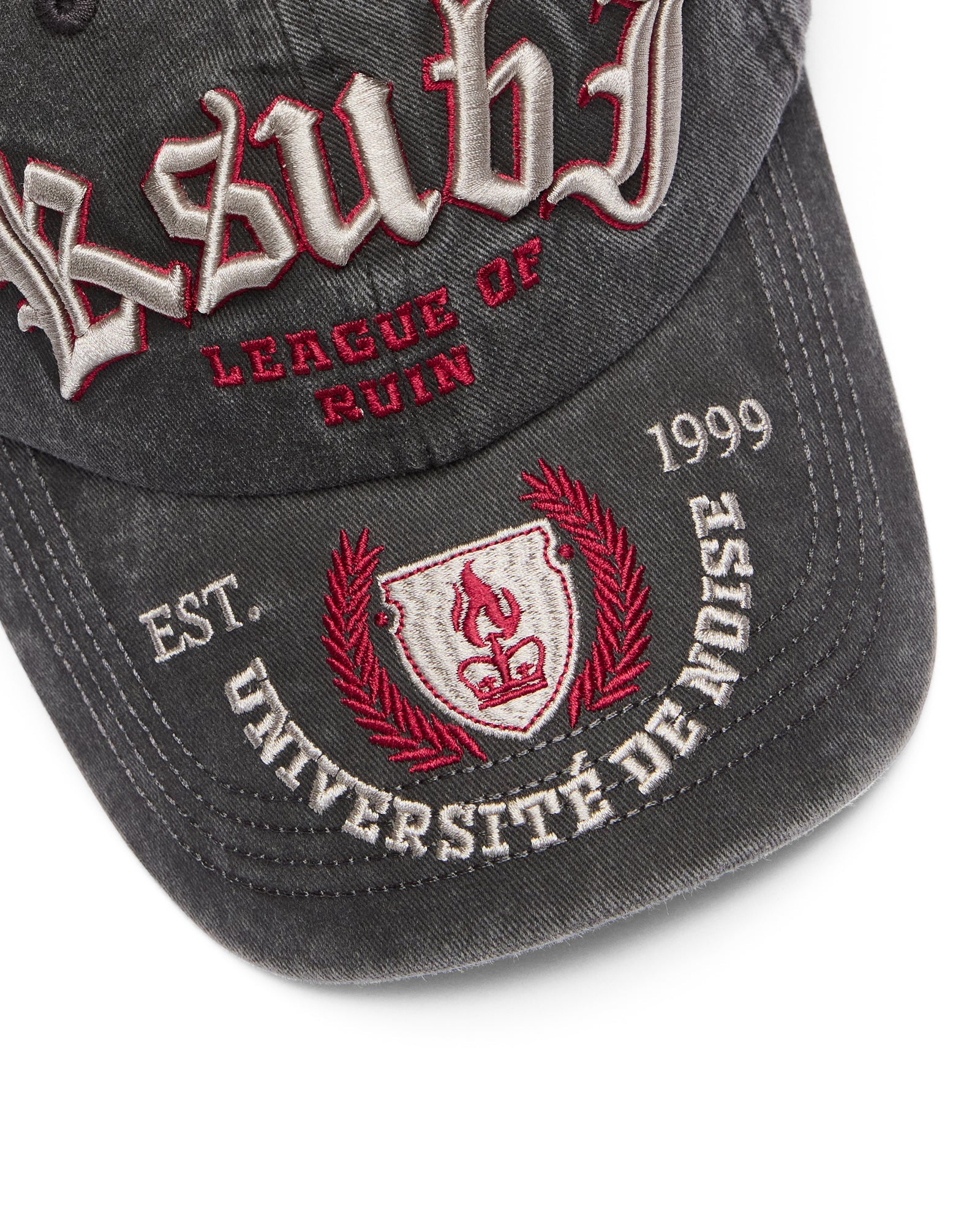The League Dad Cap Black is made of durable cotton fabric, treated with a soft enzyme wash. The front panels feature an applique artwork across the front. Our Ksubi logo is on the internal with branded seam tape finishing the interior.