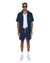 The Lounge Short Navy is a regular fit terry short with an elastic waistband and drawstrings. Made from a custom jacquarded Ksubi pattern in a navy colourway, it features cutaway pockets, a single back patch pocket, and Ksubi branded embroidery on the front left leg. Finished with T-box and 4x4 branding, and Ksubi branded hardware.