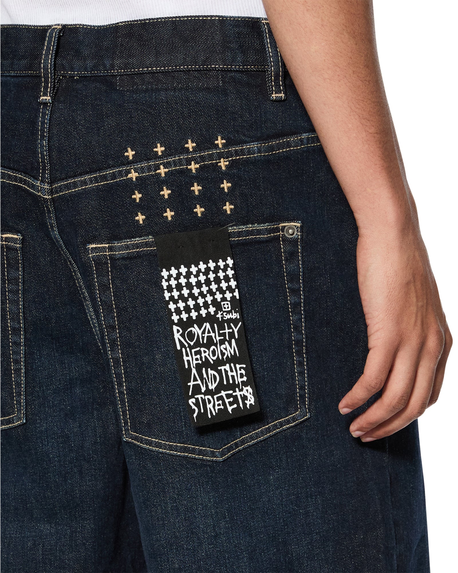 Maxx Short Rinsed is an baggy wide-leg jean short with a long rise. Made from premium comfort stretch indigo denim with a light rinsed wash, it is finished with signature T-box and 4x4 embroidery and Ksubi branded hardware.