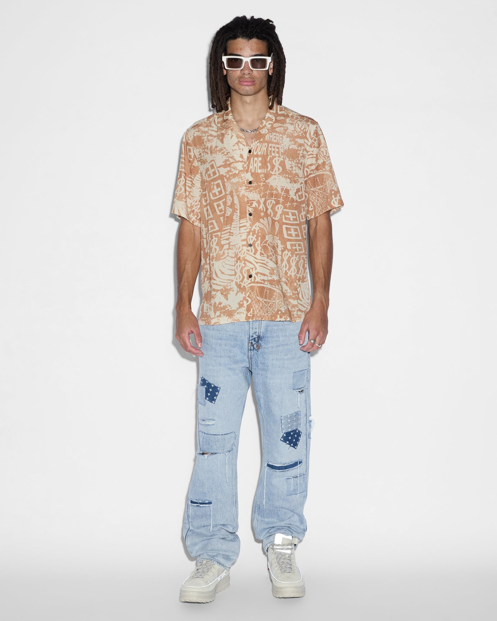 The Mills Ikon Resort Ss Shirt Multi is a short sleeved, relaxed shirt made from a premium lightweight tencel fabric. This resort shirt has an all over custom print, branded buttons down the centre front and a Ksubi x Patty Mills collaboration t-box print.