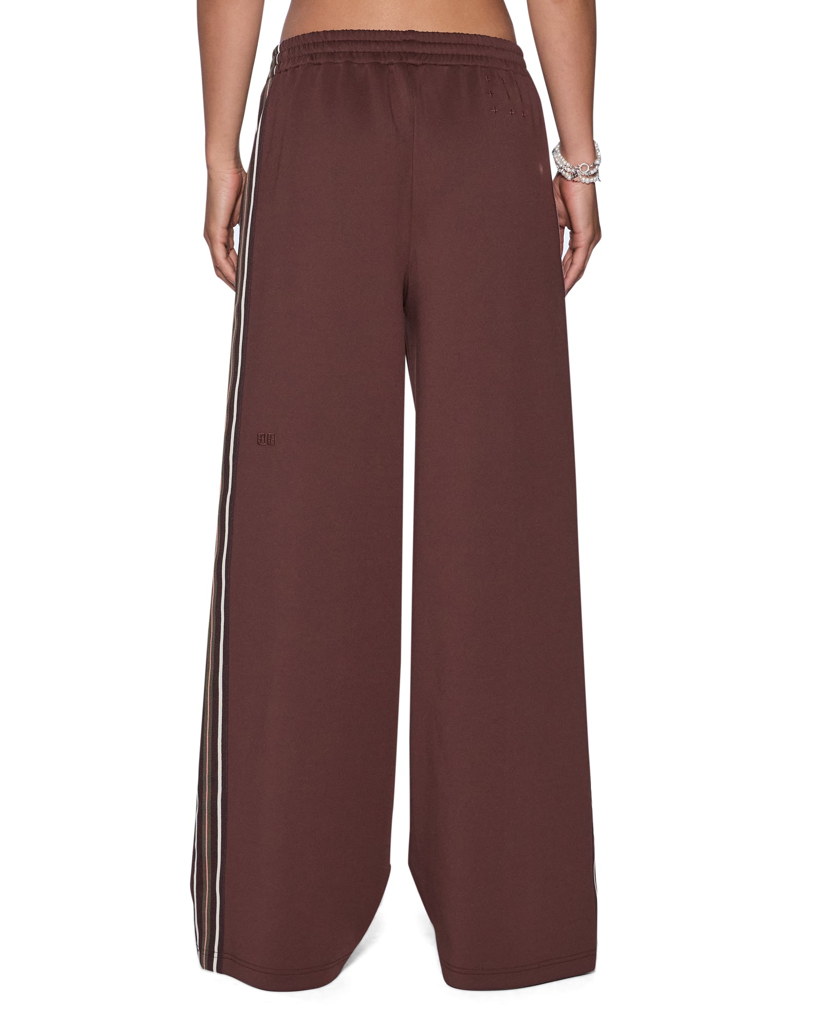 The Origin Trakpant Mocha is a wide-leg track pant designed to sit at the mid-waist with an elasticated waistband and adjustable drawcord for comfort. Crafted from heavyweight premium scuba jersey in a mocha colourway, the style features coloured sport webbing tape down the sides, welt pockets integrated into the side panels, and signature Ksubi T-box embroidery at the front.