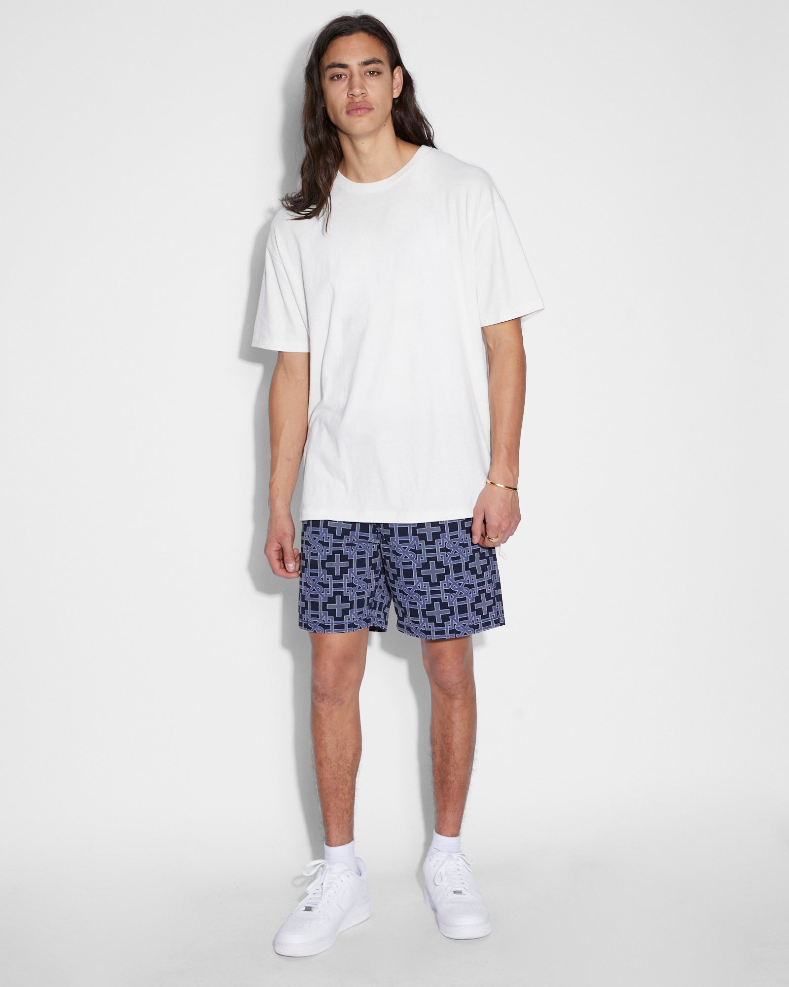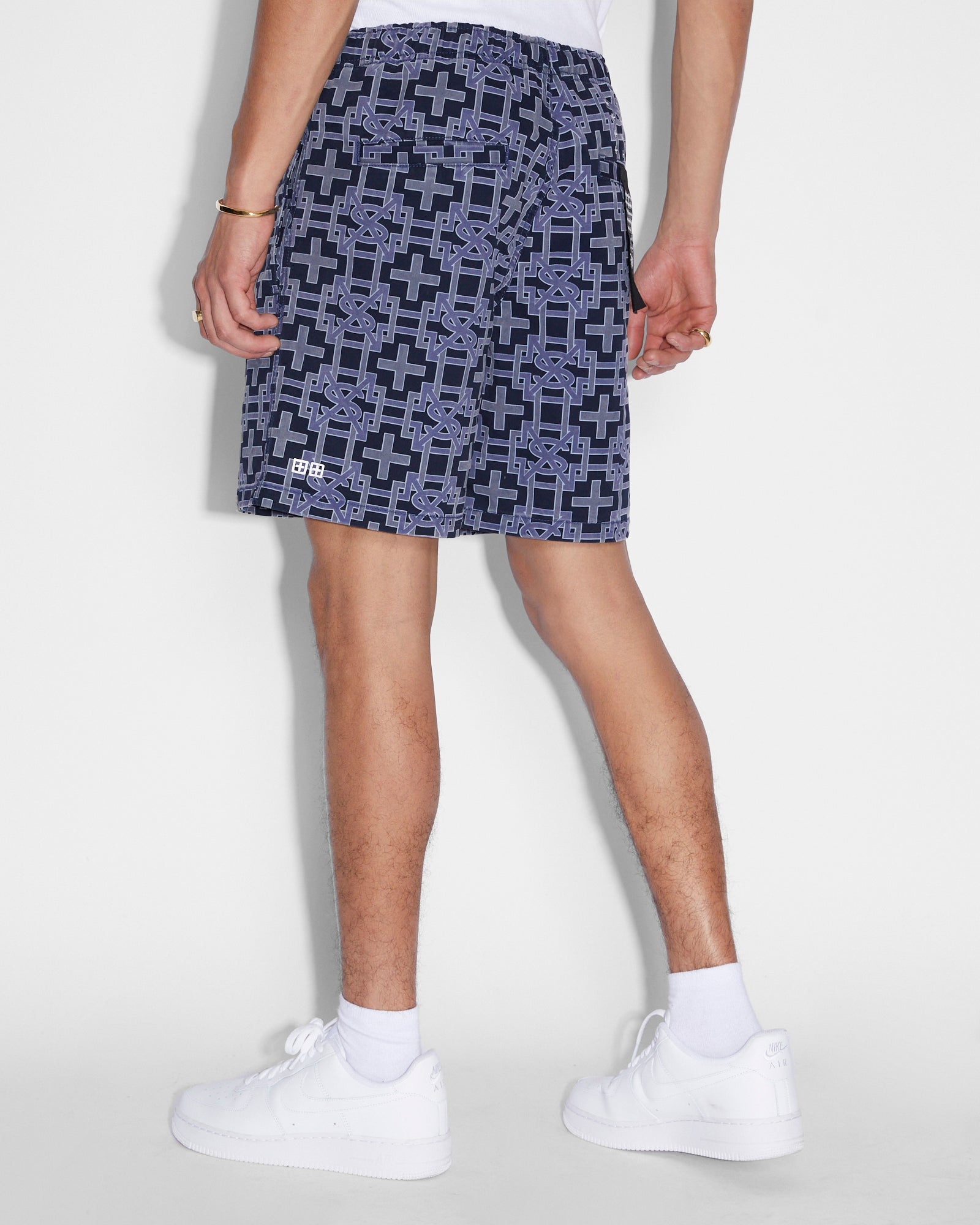 The Plus Walkshort Navy is a mid rise, regular fitted short with an elasticated waistband and drawcord. Made from a premium cotton drill, this style has side pockets, back welt pockets and features an original printed artwork print.
