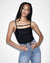 The Precious Bodysuit Black is made from premium soft rib fabric and features strap detail with a t-box charm. This bodysuit has a figure hugging fit, scoop neck, thong base and Ksubi embroidery.