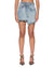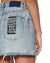 The Rap Skirt is a classic mini skirt constructed from a rigid denim in a blue colourway. This style features an asymmetric front with wrap detail, five pockets, and distressing throughout.