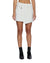 The Rap Skirt Curve Ecru is an asymmetric mini skirt with a front wrap detail and classic five-pocket styling. Crafted from premium Ecru denim with tonal topstitching, it features curved edges, Ksubi T-box and 3x4 embroidery, and branded hardware. Style back with the Oversized Shirt Ecru.