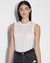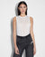 The Restrict Corset Bodysuit Ecru is a sleeveless bodysuit made from premium cupro jersey with an ultra soft hand feel. This style has a body hugging fit, crew neck, thong coverage and showcases front and back dart detailing, snaps in crotch opening and Ksubi branding.