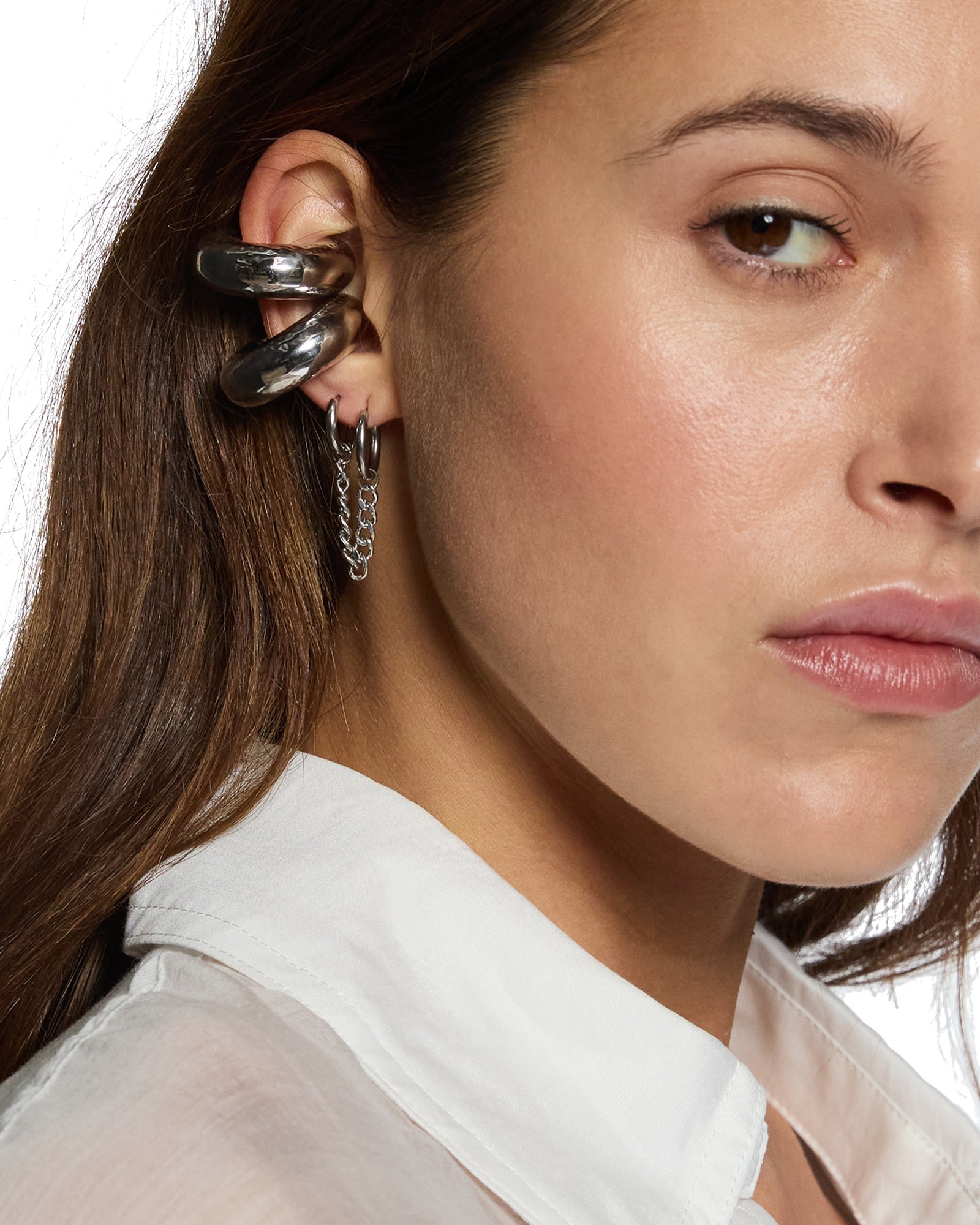 The Silver Chainlink Huggies are a contemporary reinterpretation of the classic huggie earring. Made from premium stainless steel, each pair features a delicate drop chain, offering a refined interplay of movement and industrial edge hand-assembled with meticulous care.