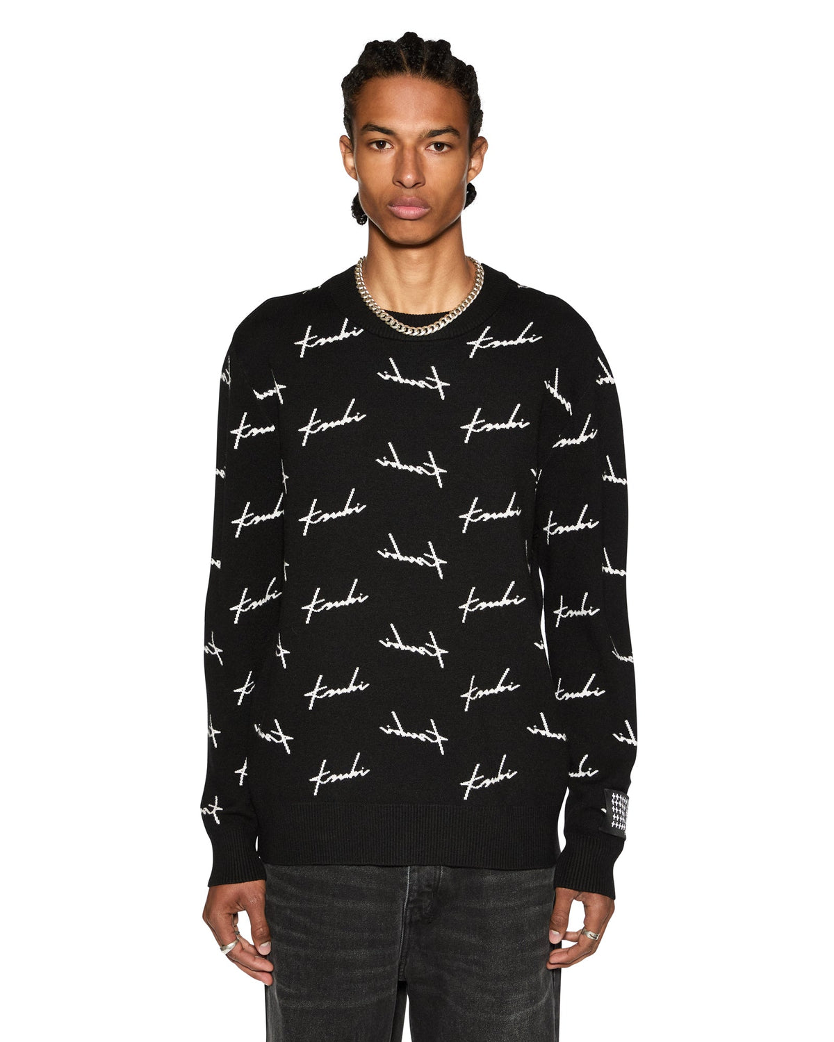 The Skript Knit Crew Black is a relaxed fit crew neck sweater crafted from premium cotton. It features seasonal jacquarded artwork, a signature woven sleeve tag, and t-box embroidery.
