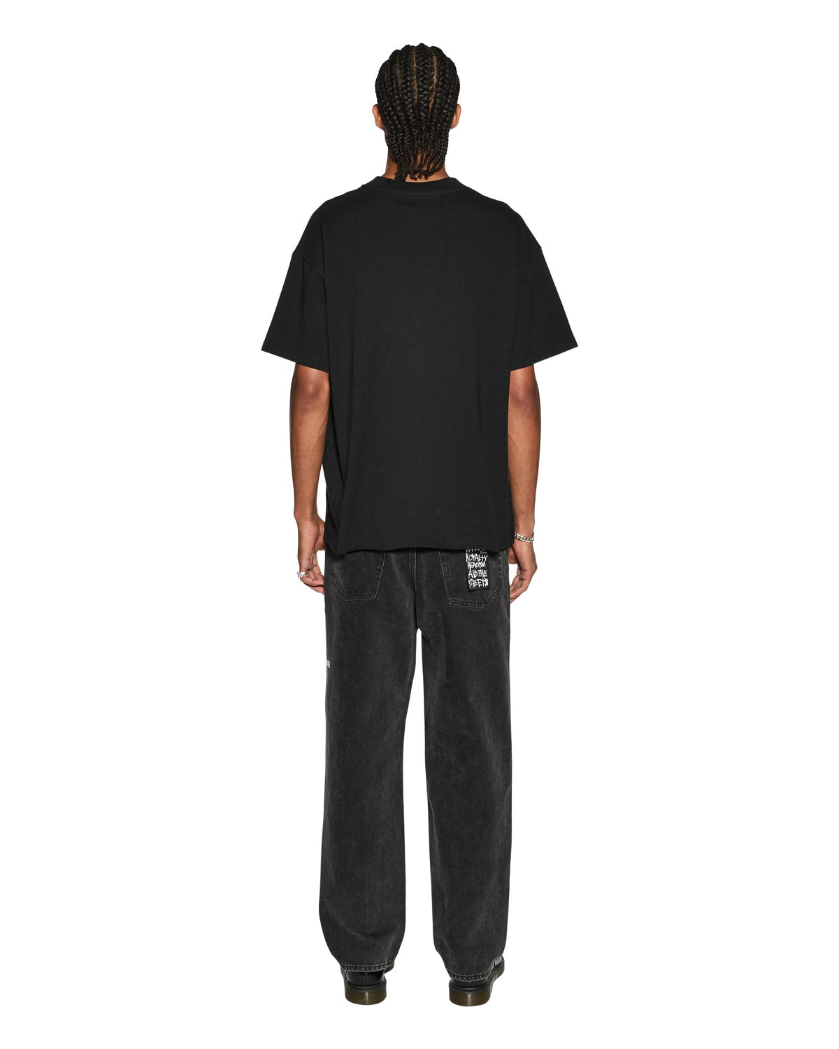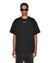 The Sott Ekcess Ss Tee Jet Black is a boxy oversized fitting short sleeve t-shirt with a dropped shoulder. Made from a premium heavy weight cotton jersey in a jet black colourway. Finished with a raised rubber logo at the centre front neckline and matching 4x4 at the back. This tee has a raw cut back hem, reversed overlocked side seam and signature rats tail details.
