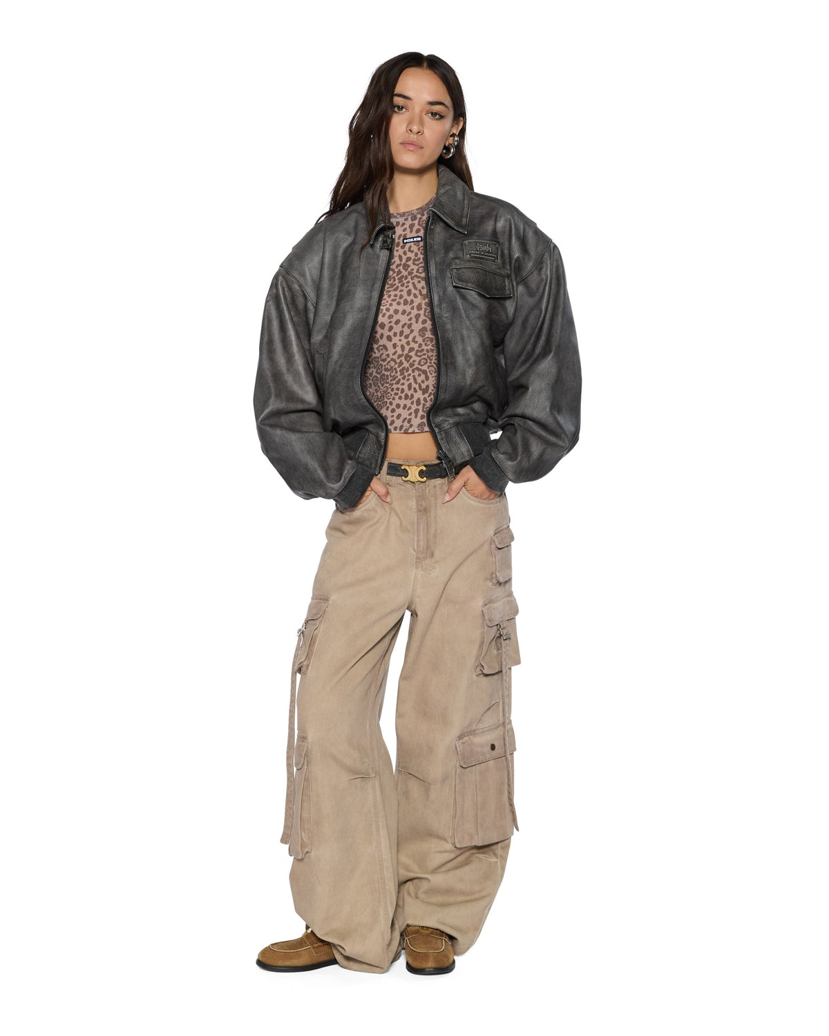 The Staple Ss Tee Leopard is a slim fit mock neck cap sleeve tee made from premium European 100% sheer rib cotton in a seasonal leopard print. Finished with a woven SOTT label on the front and Ksubi T-box embroidery, this style pairs effortlessly with the Ksuper Cargo Terra for an elevated street look.