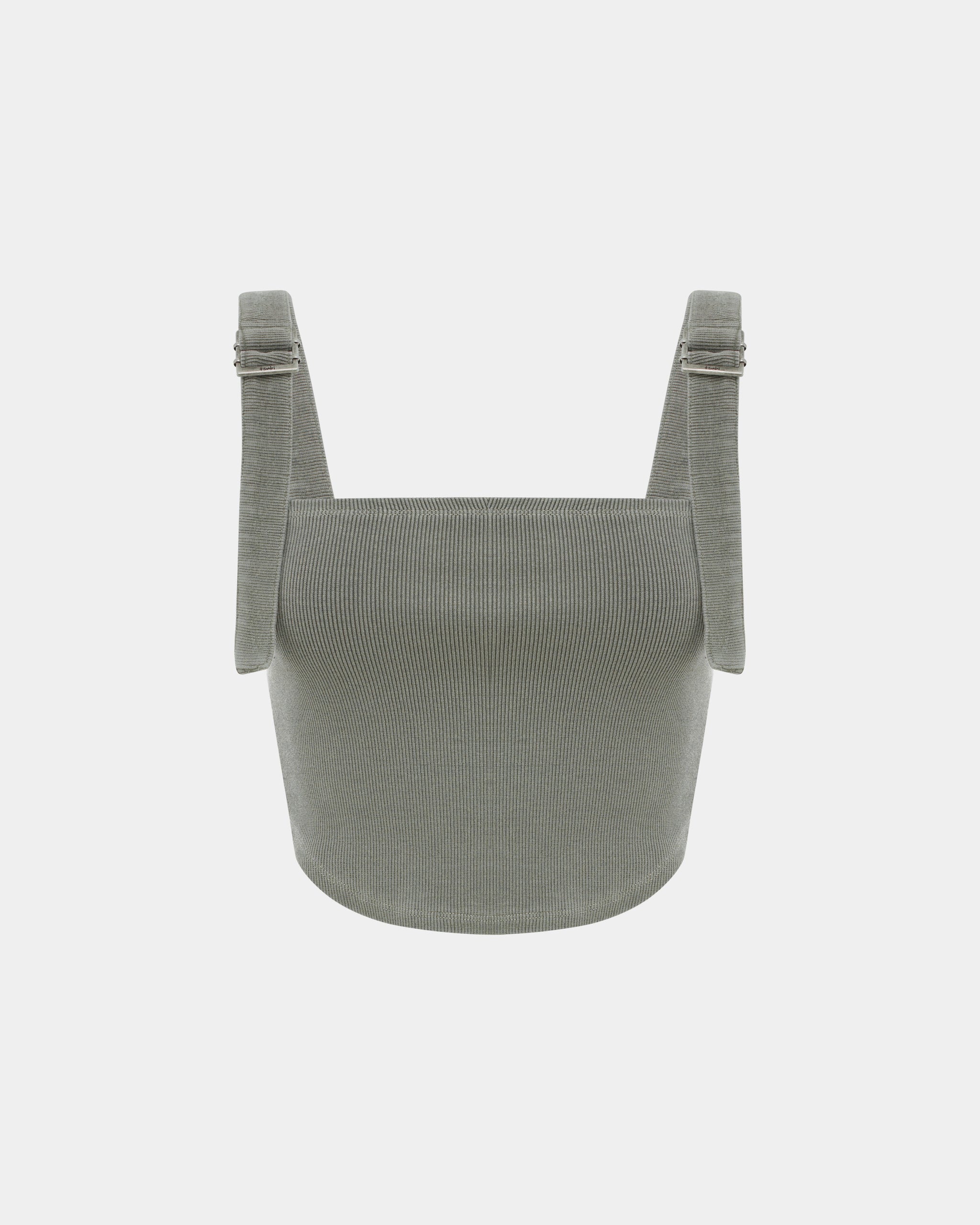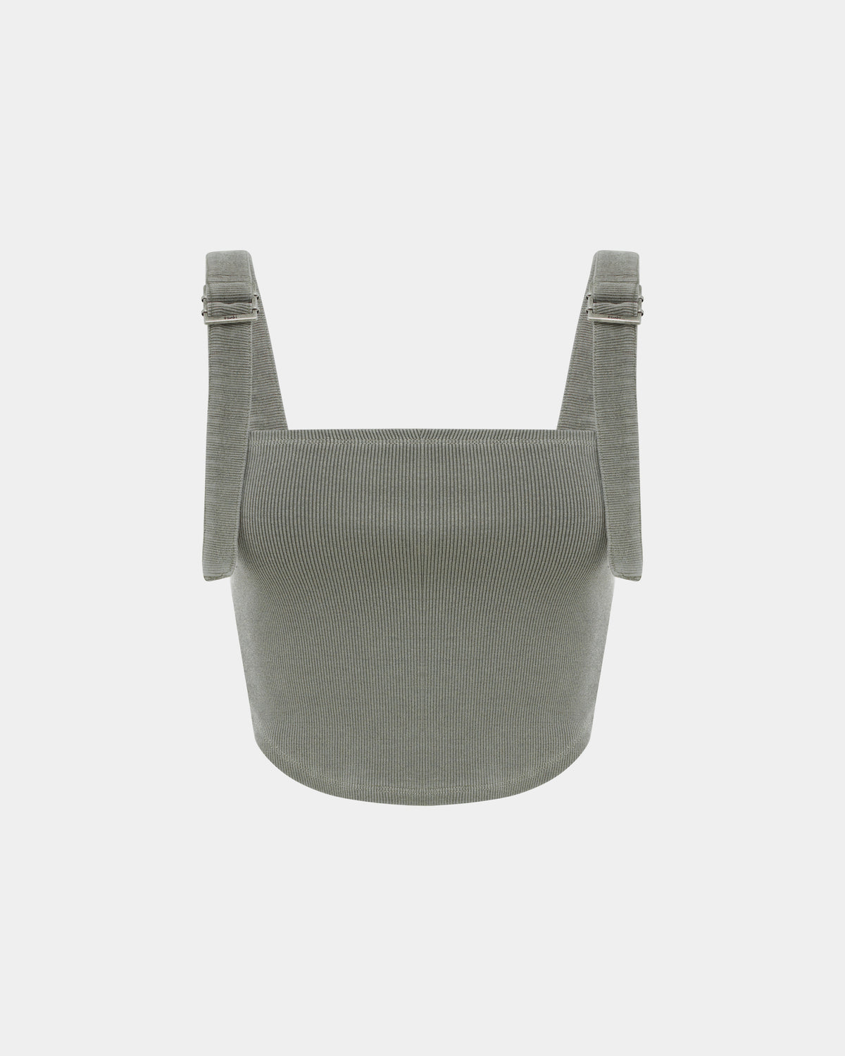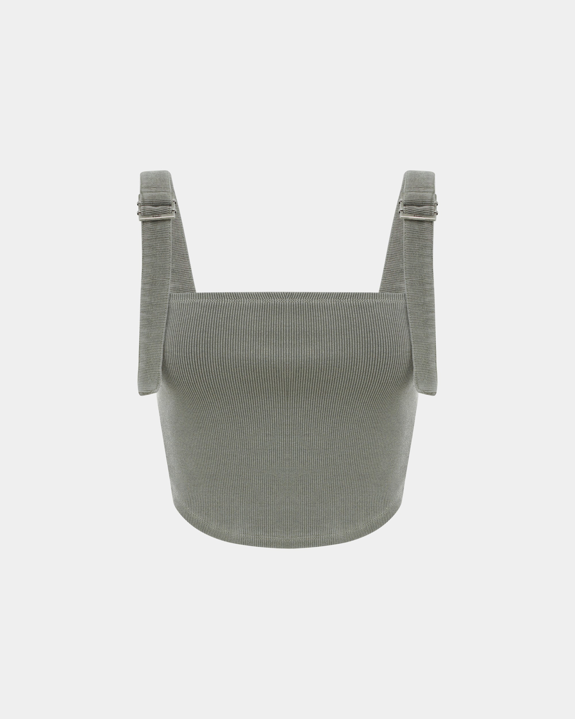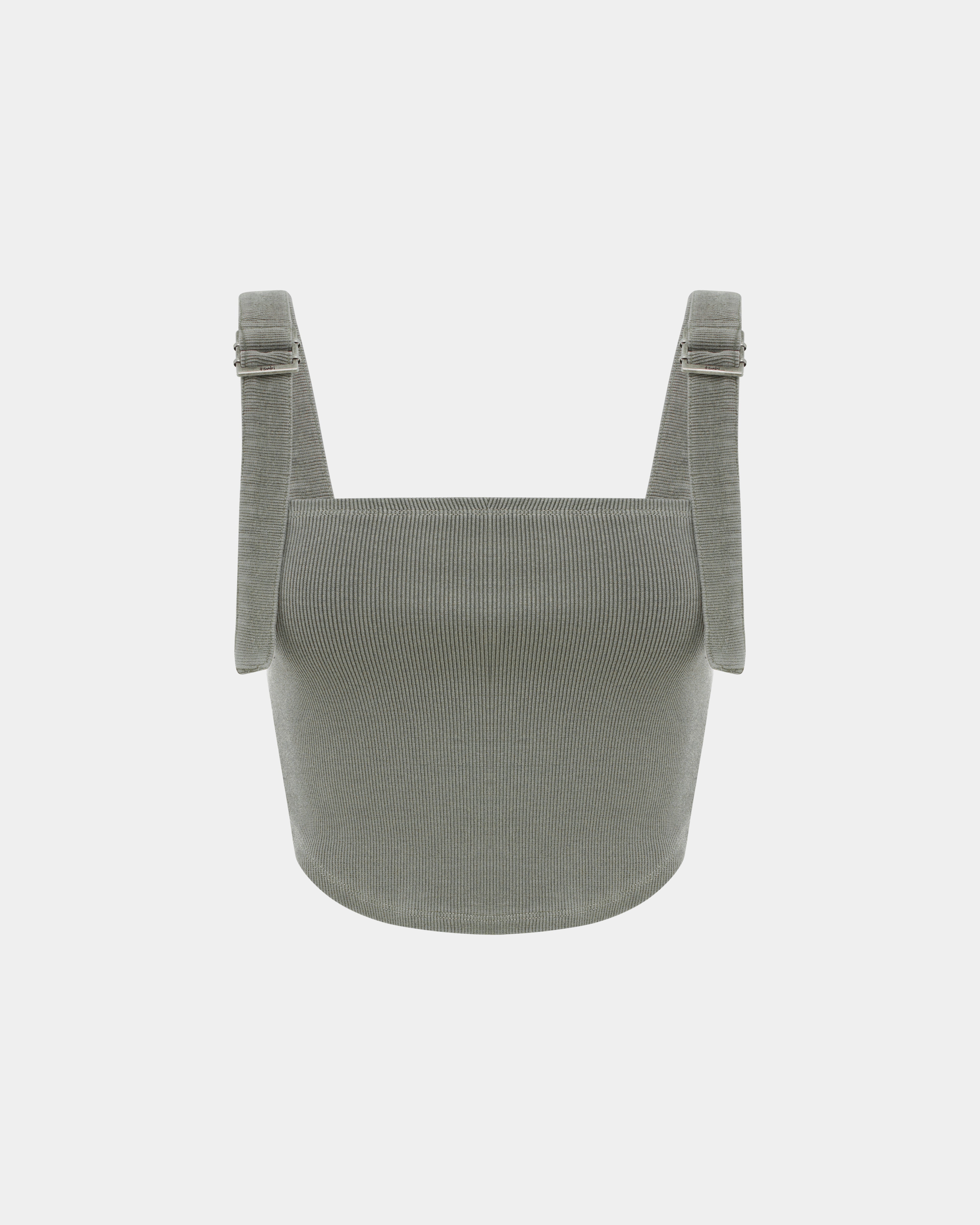 The Syndicate Buckle Tank Ash is a cropped tank top made from a premium ribbed stretch cotton in a grey colourway. This tank has chunky straps with buckles at the front and a curved shaped hemline. Finished with a tonal Ksubi logo embroidered on the back neck, a cross dollar logo embroidered at the front and Ksubi x Patty Mills signature t-box embroidery on the side.