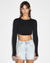 The Syndicate Crop Ls Tee Black is a super cropped long-sleeve top in black. Made from premium cotton/elastane rib fabric, this style features a rounded hem shape, long fitted sleeves and convenient thumb holes. The back is detailed with a branded t-box and the Ksubi SOTT embroidery on the front.