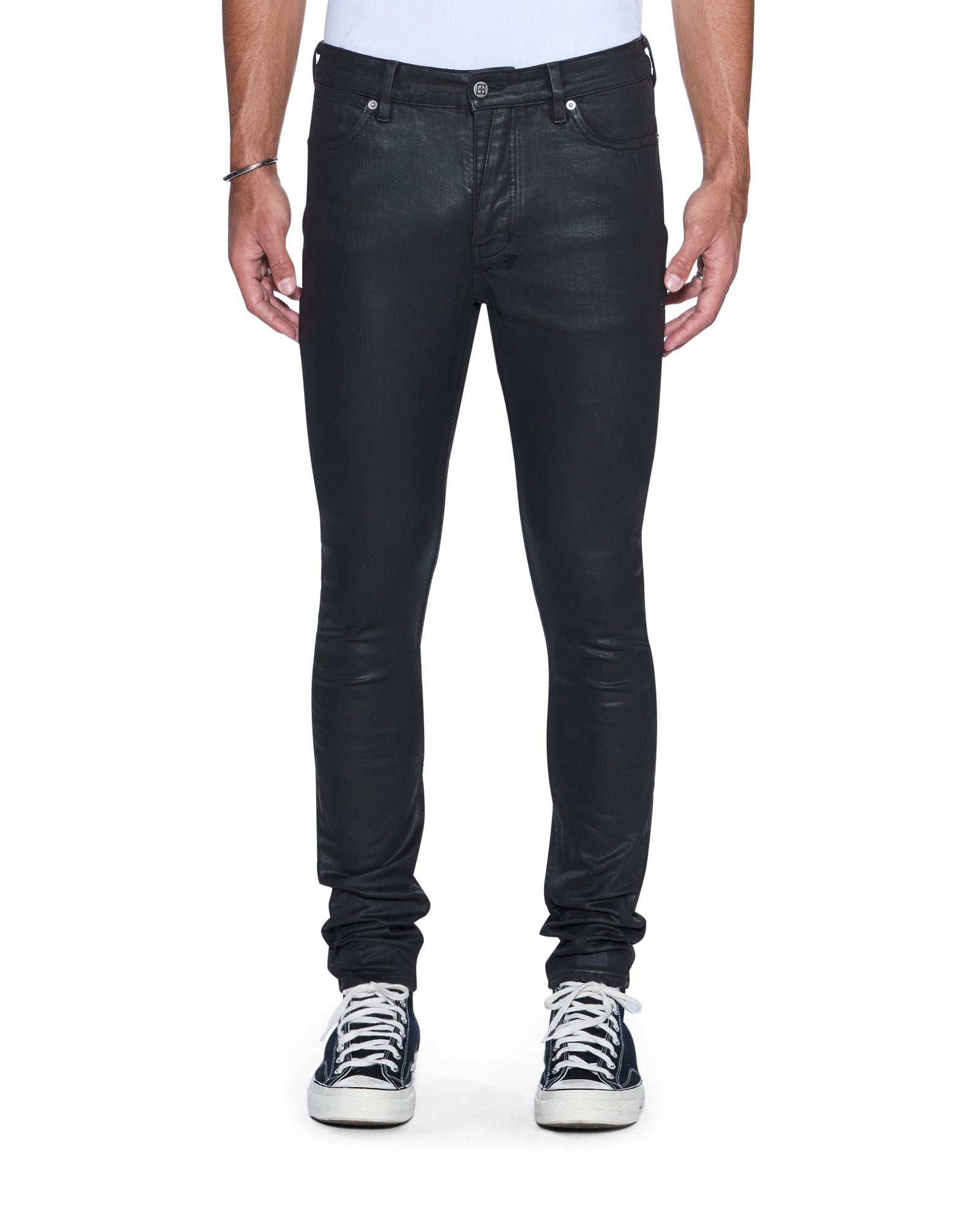The Van Winkle Main Stage is a mid rise, skinny fit jean. Made from a premium comfort stretch denim with wax coating in a black colourway. This style features back 4x4 cross embroidery, contrast t-box printed branding, signature woven pocket flag and finished with signature Ksubi branding.