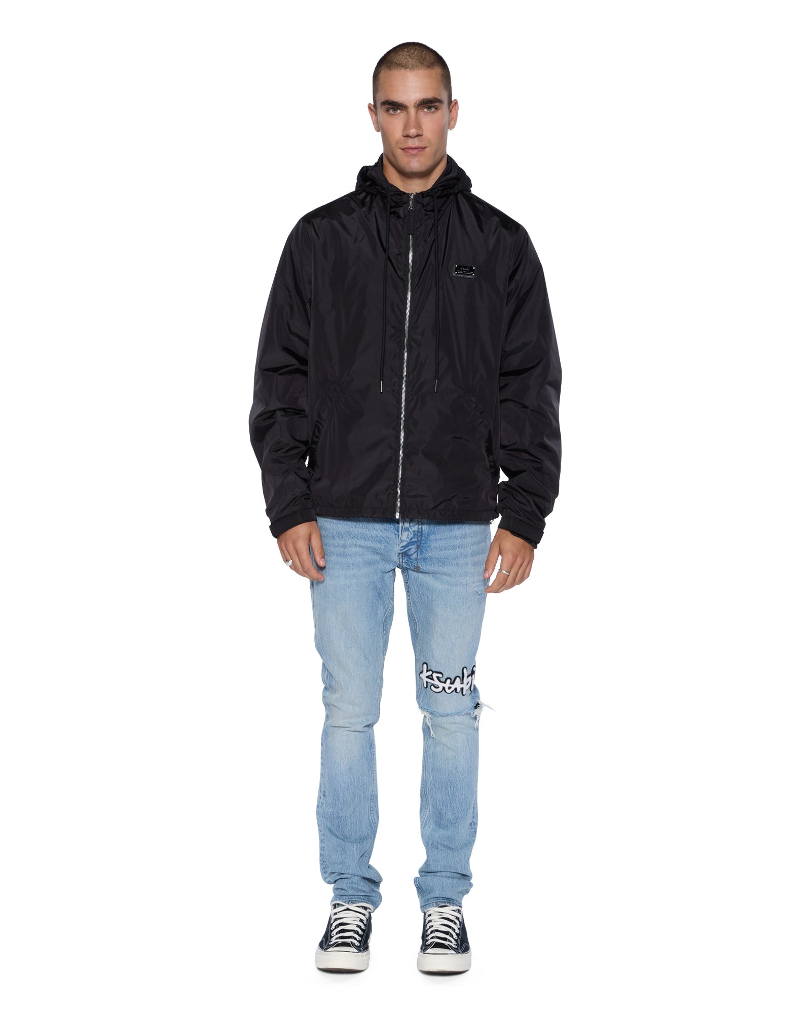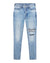 The Van Winkle Painter 1999 is a mid-rise, five-pocket full-length skinny jean made from premium comfort stretch indigo denim with a medium stone wash. Featuring unique angled belt loops, front fly seam detail, and a left knee deconstruction with a seasonal boucle patch, it's finished with t-box and 4x4 embroidery, ghost patching, and Ksubi branded hardware.